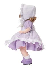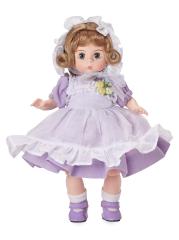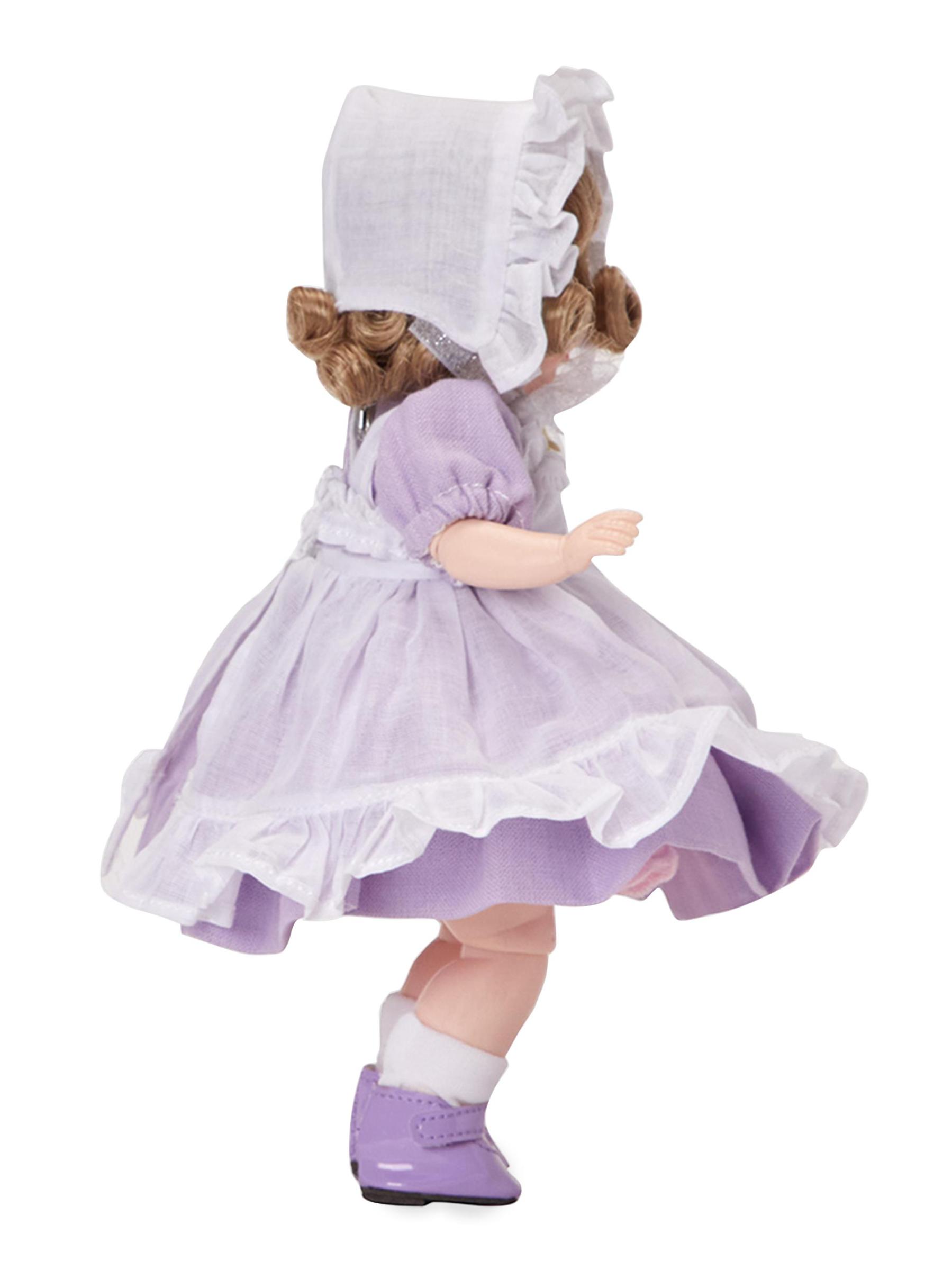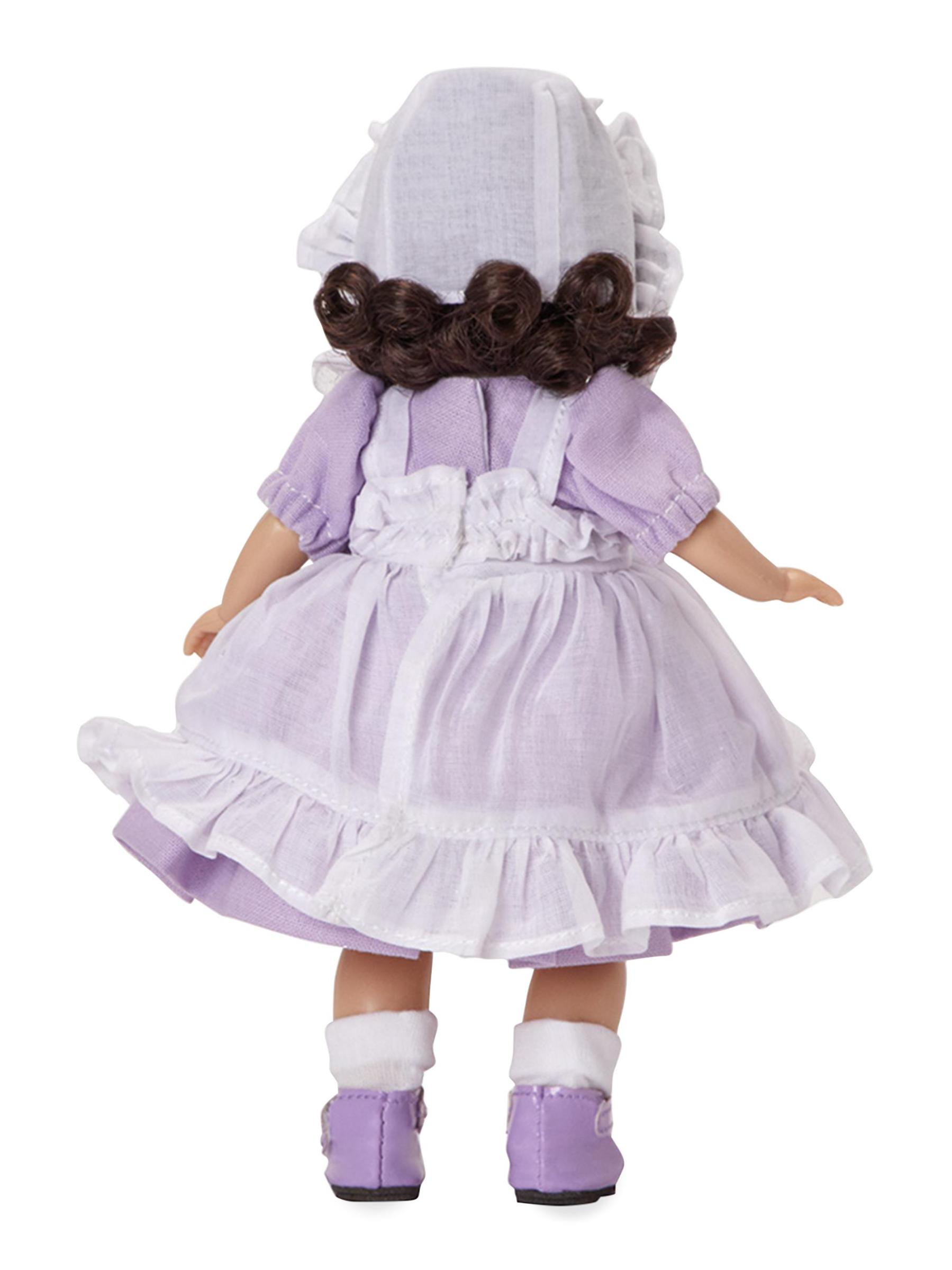 تتميز دمية ويندي للاحتفال بعيد الميلاد القابلة للتجميع من مدام ألكسندر بشعر أشقر مزين بتموجات كثيفة وعيون رمادية وفستان بينافور مكشكش وقبعة مكشكشة وخلخال وحذاء ماري جين.