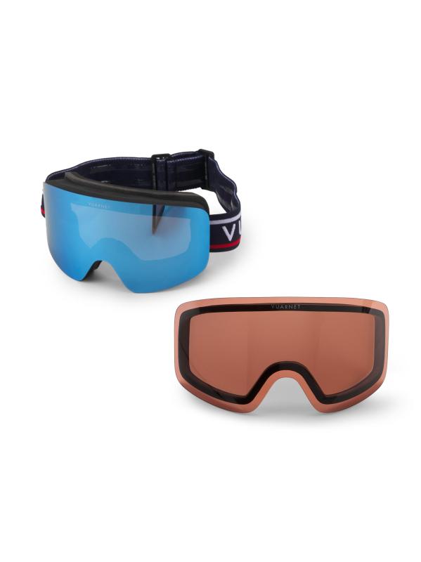 تتميز نظارات Cervin للتزلج من Vuarnet بتصميم محقن مع عدسة مرآة وشاشة كروية. يتضمن القناع علامة «VUARNET» التجارية على كل من الشاشة والحزام.حماية 100% من الأشعة فوق البنفسجية عدسات عاكسة تشمل الحقيبة وقماش التنظيف تم حقنه صُنع في فرنسا