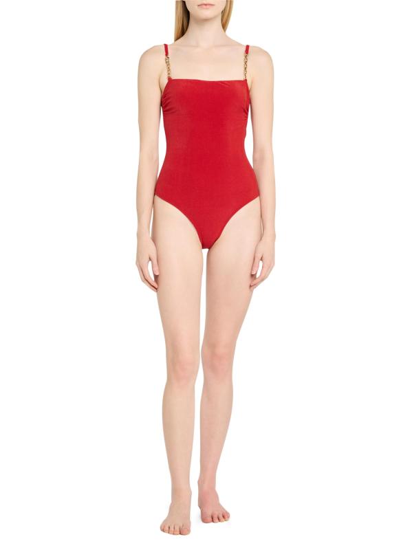 تتميز بدلة السباحة Lenny Niemeyer Swim المكونة من قطعة واحدة بتفاصيل سلسلة ذهبية اللون على أحزمة السباغيتي.