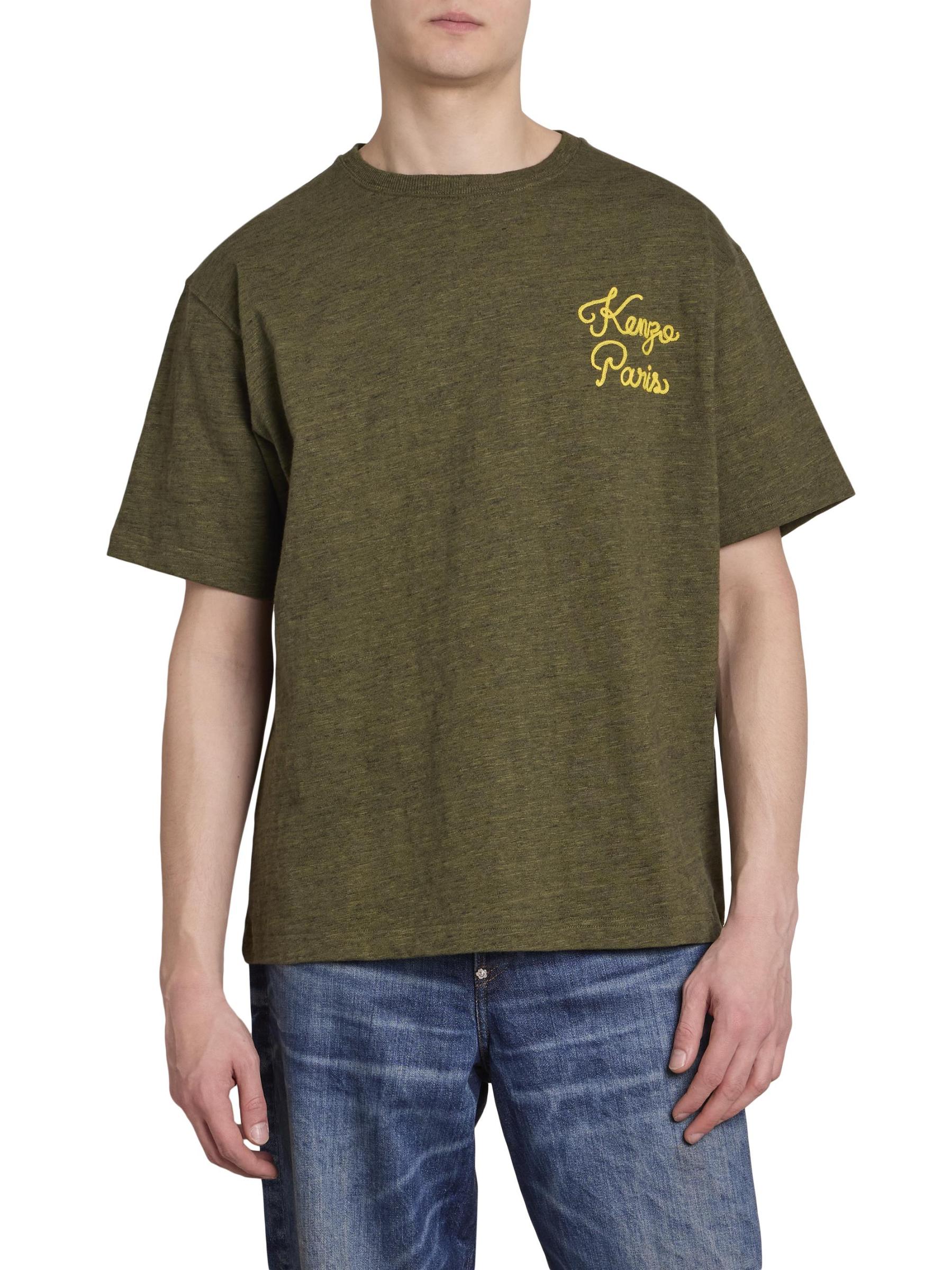 هذا التيشيرت ذو الرقبة المستديرة مصنوع من القطن ومزين بخياطة متسلسلة بشعار كينزو على الجانب الأيسر من الصدر.