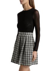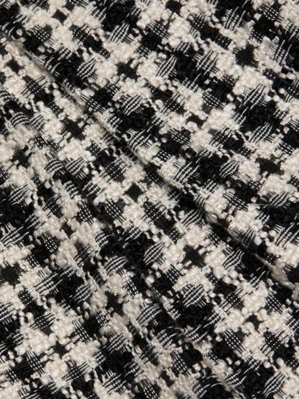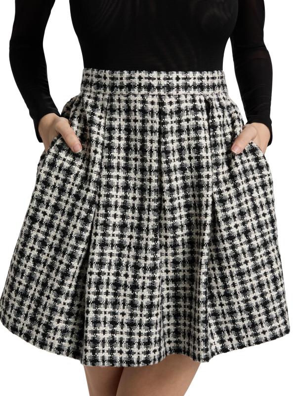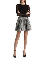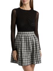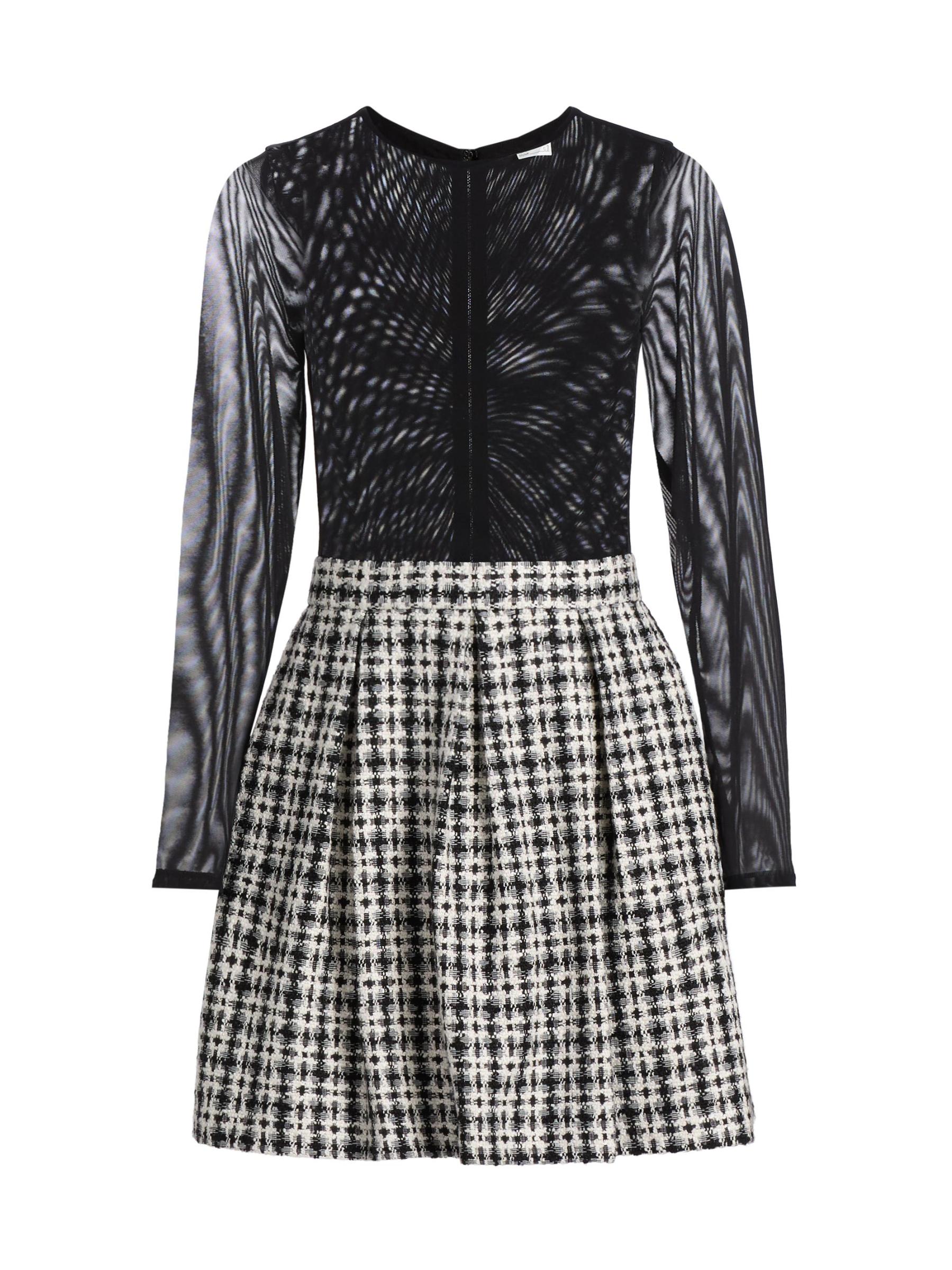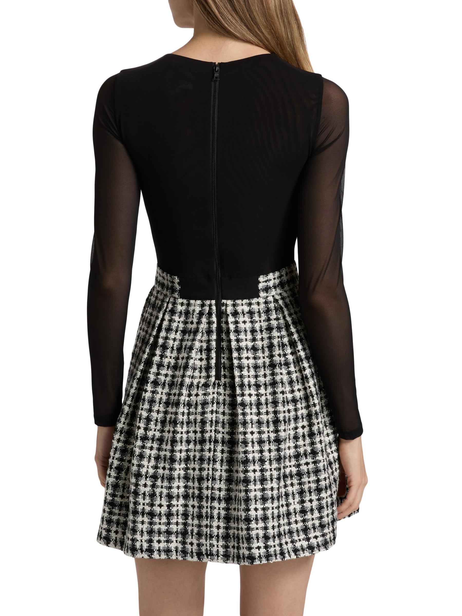 تم تصميم فستان Chara القصير الواسع من Alice + Olivia بتصميم شبكي بأكمام طويلة وتنورة من مزيج التويد.