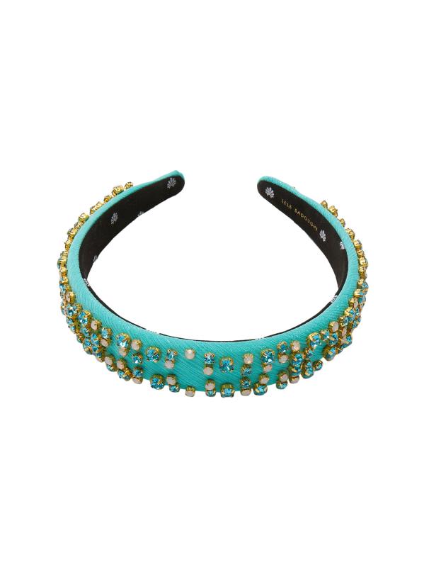 صُنع طوق رأس شارلوت من Lele Sadoughi من المخمل ويتميز بزخرفة مزخرفة يدويًا مع لآلئ تقليدية متعددة الأحجام وخرز معدني مطلي بالذهب عيار 14 قيراطًا.