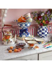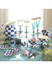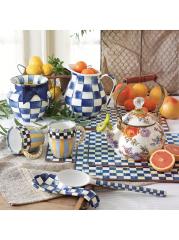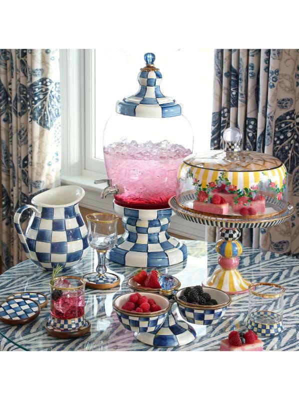 هذا الإبريق من Mackenzie-Childs يزين أي بار أو مائدة عشاء. تم تعزيز الهيكل السفلي المصنوع من الفولاذ الثقيل بإبرازات مرصعة بالجواهر، وهو مطلي بفحوصات مرسومة يدويًا.