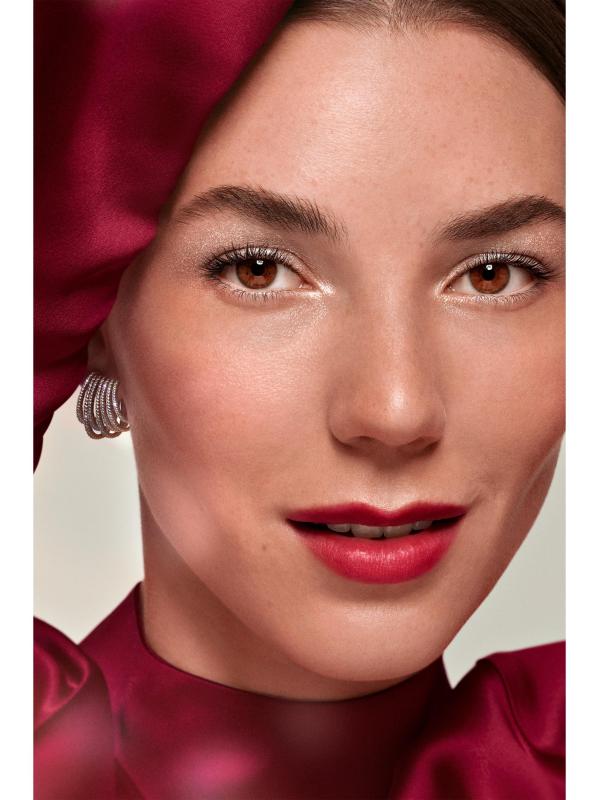 امسحي بلطف النقاط العالية من الوجه باستخدام فرشاة Buff and Blur (تُباع بشكل منفصل)، وامزجيها بحركات دائرية ناعمة للحصول على إشراقة مشرقة من الداخل.