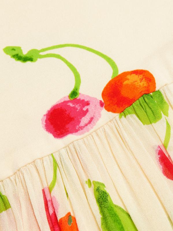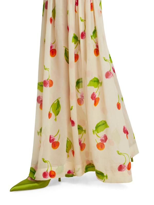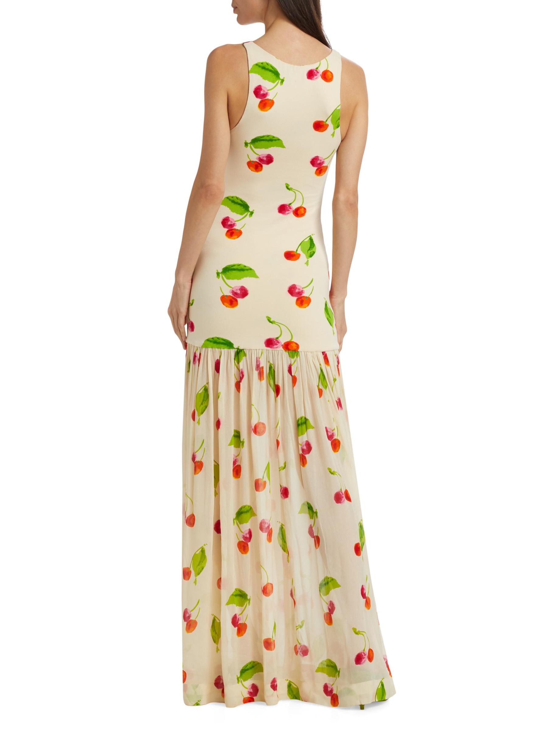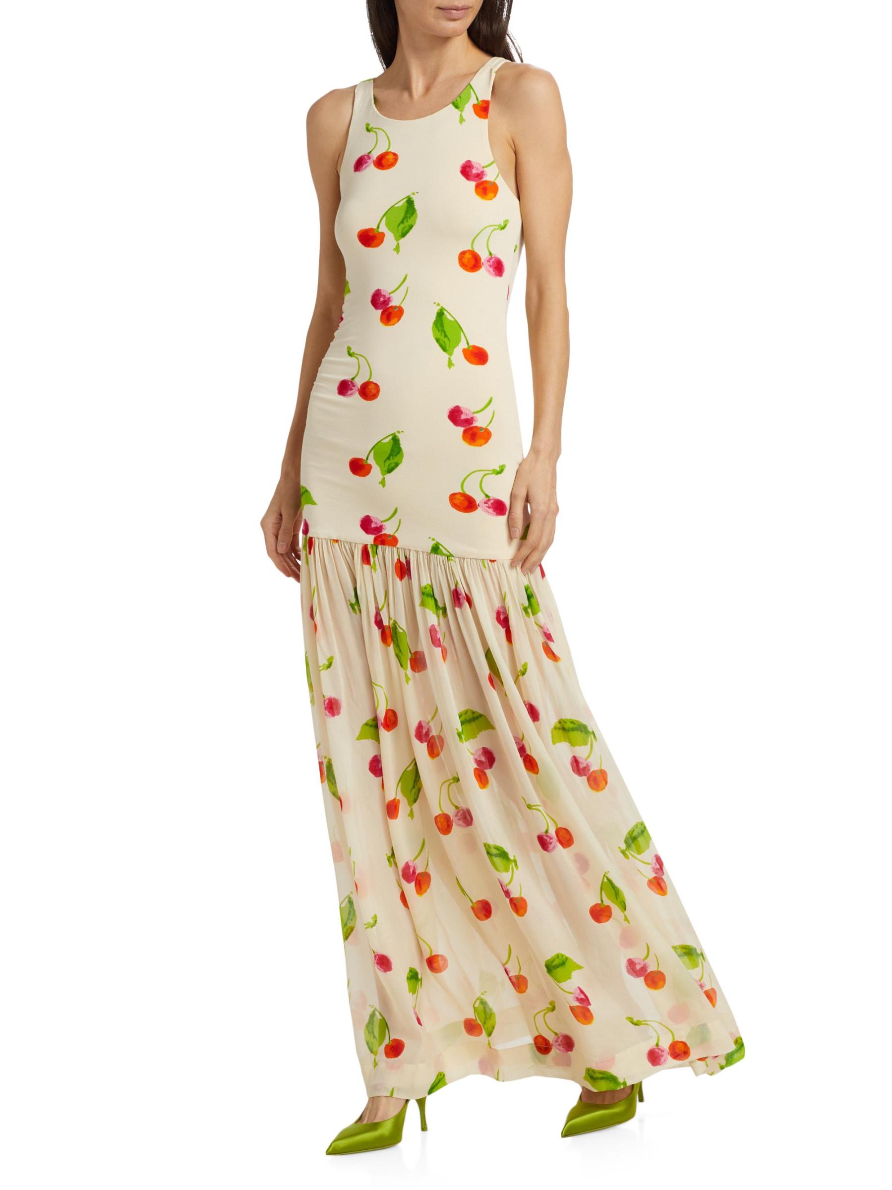 هذا الفستان الطويل بدون أكمام من SWF مصنوع من الفسكوز ومزين بطبعة الكرز المرحة.