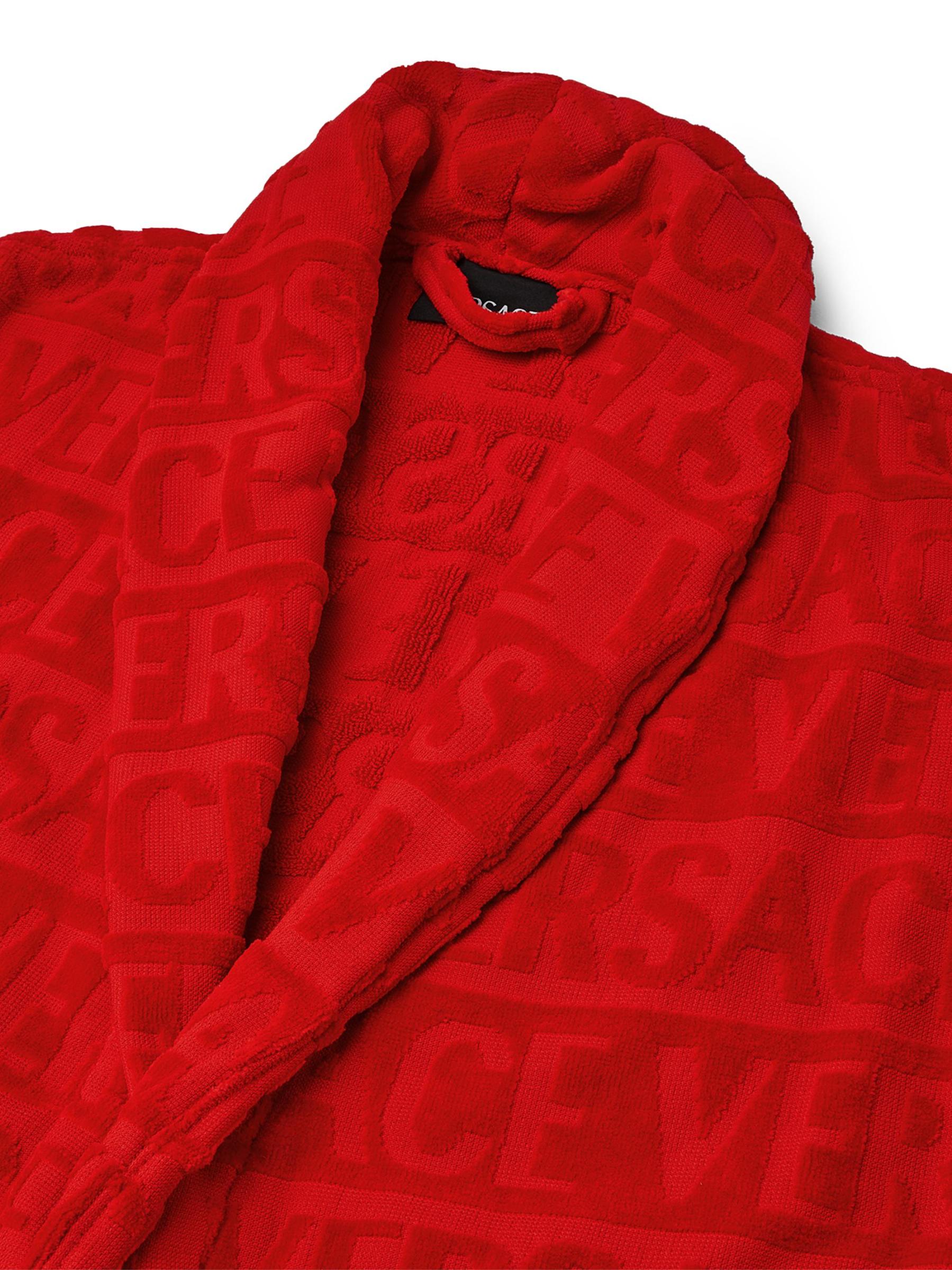 صُنع رداء الحمام هذا المستوحى من عيد الميلاد من فيرساتشي من القطن الفاخر، وهو مزين بنمط باروكو الخاص بالعلامة التجارية ومصمم بجيوب جانبية. يتميّز هذا الطراز بزخرفة احتفالية تُبرز الأساور والحزام القابل للربط الذاتي.
