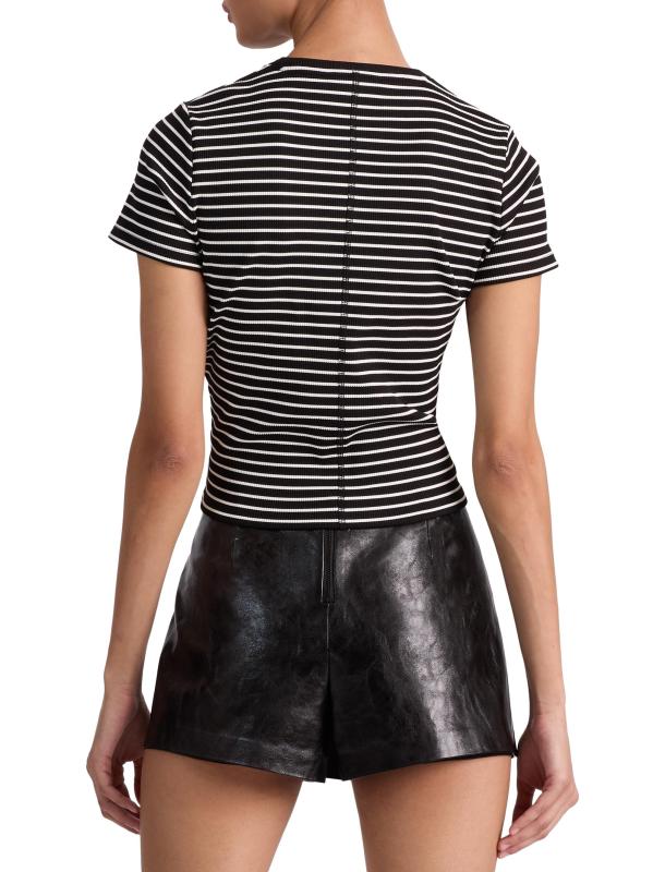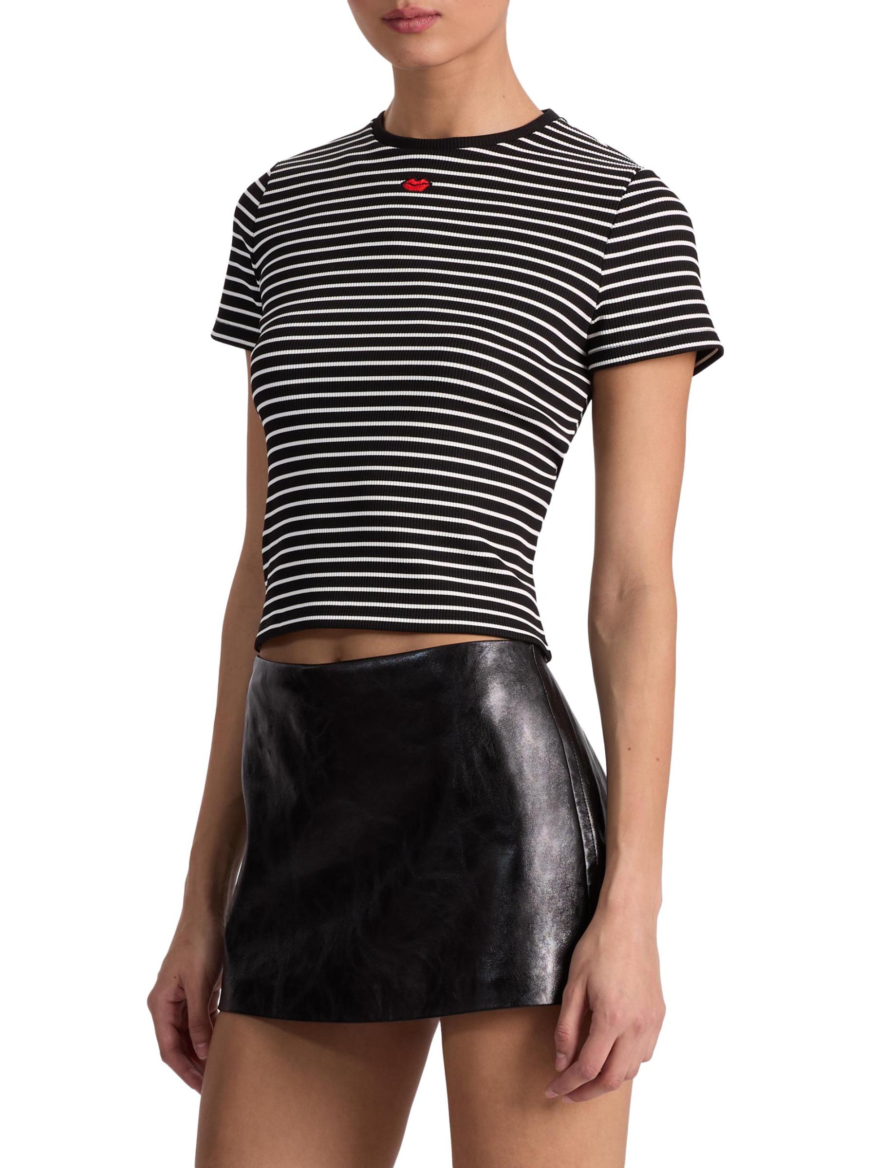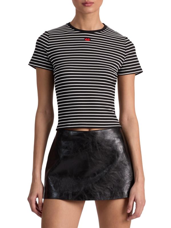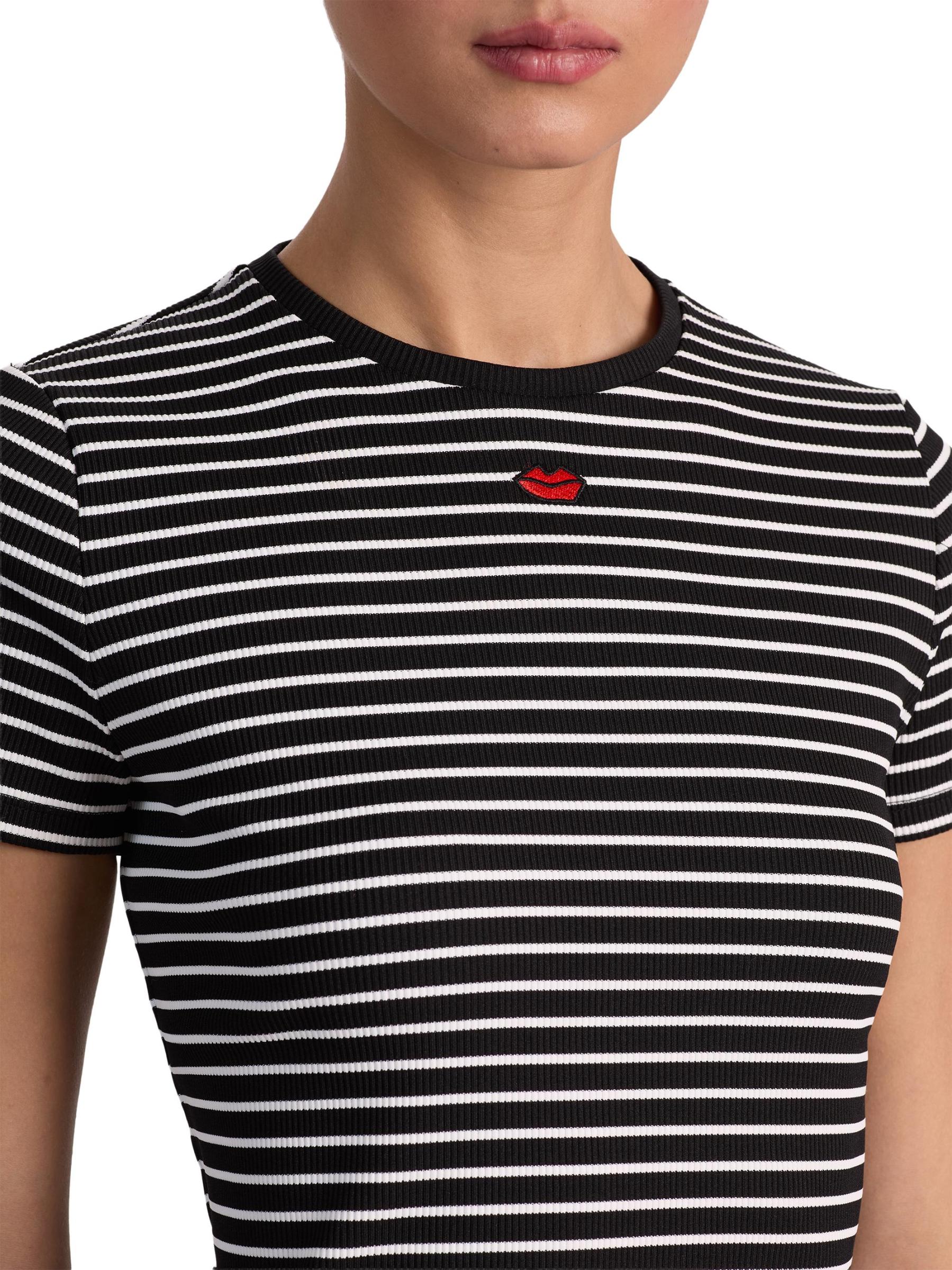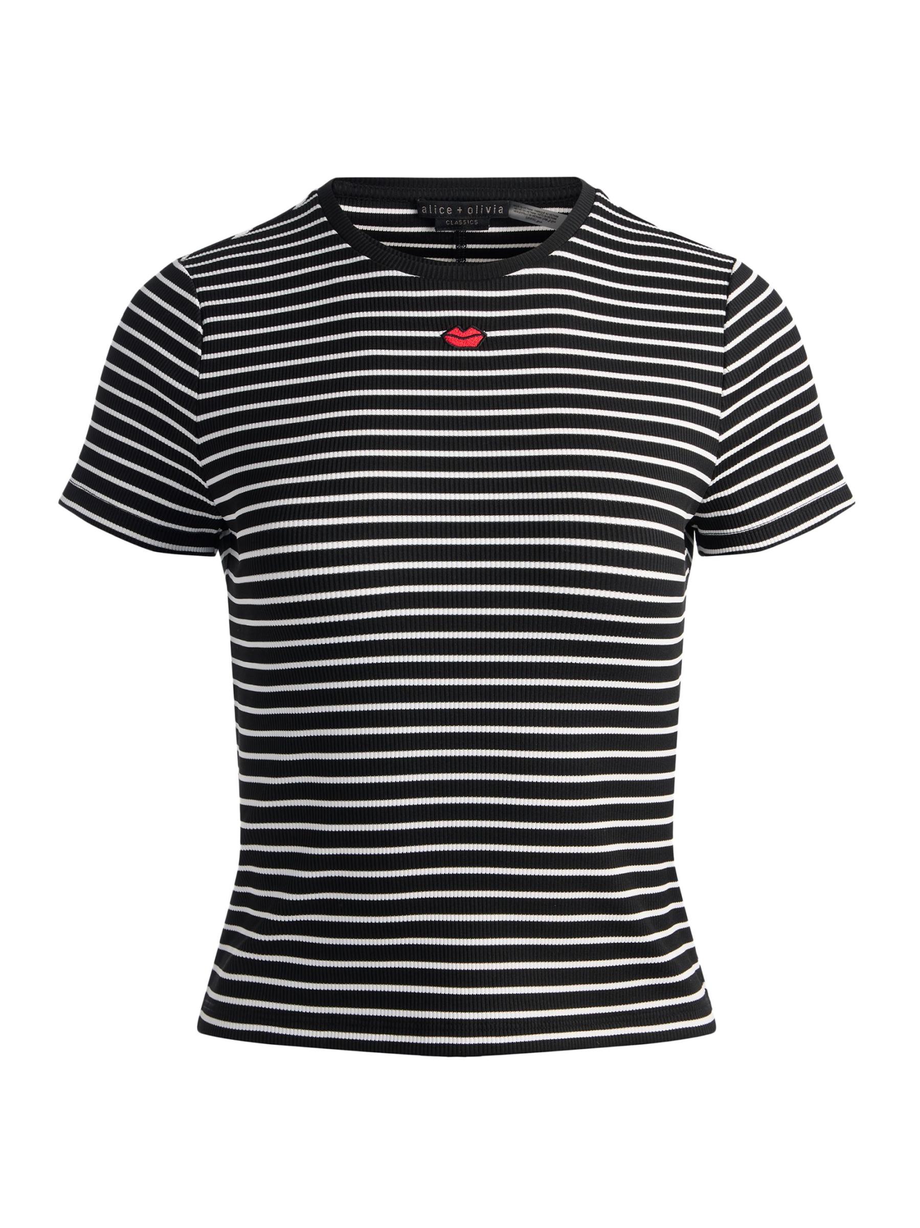 يتميز تي شيرت Cindy هذا من Alice + Olivia بتصميم مخطط محبوك مع تفاصيل مطرزة وياقة مستديرة.