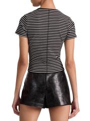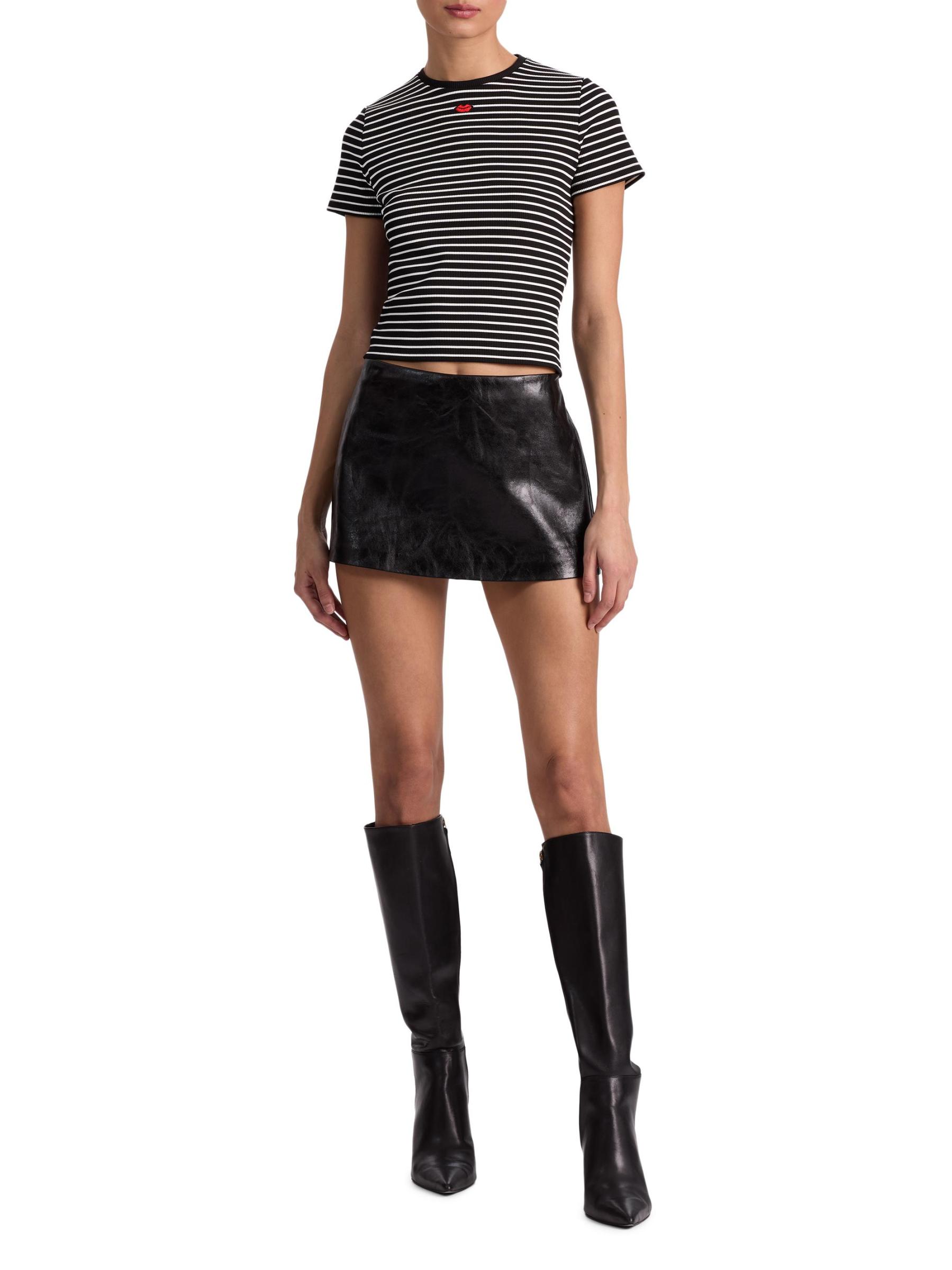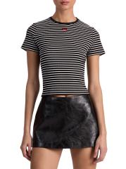 يتميز تي شيرت Cindy هذا من Alice + Olivia بتصميم مخطط محبوك مع تفاصيل مطرزة وياقة مستديرة.رقبة مستديرة أكمام قصيرة تسحب 97% نايلون/ 3% إليستين المجموعة: 97% نايلون/ 3% إيلاستين تنظيف جاف مستوردة