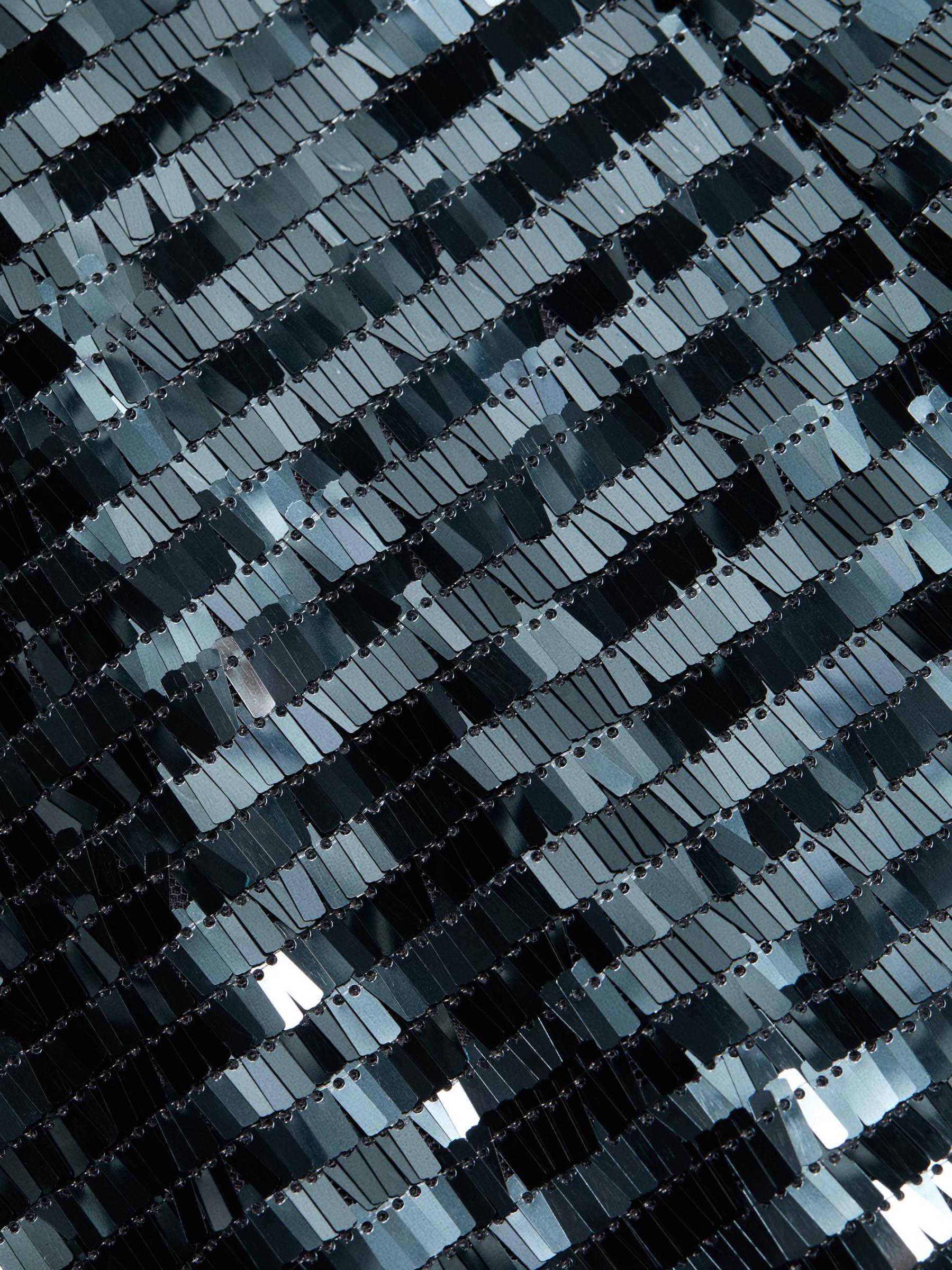 فستان متوسط الطول بدون حمالات مزين بالترتر الدائري