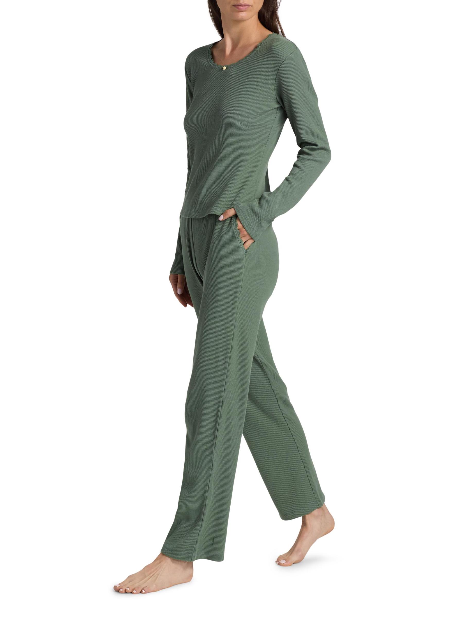 صُممت بيجامات كلير من بابينيل المصنوعة من القطن المرن بنسيج وافل وصورة ظلية مريحة. مصنوع من القطن العضوي. 96% قطن عضوي/ 4% إيلاستين. يُغسل في الغسالة. مُستورَد.