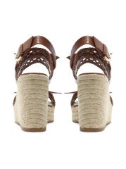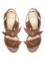 من مجموعة كلاريتا. تم تزيين أسافين ألكسندر بيرمان المصنوعة من الجلد والرافيا بتفاصيل القوس المميزة للعلامة التجارية.