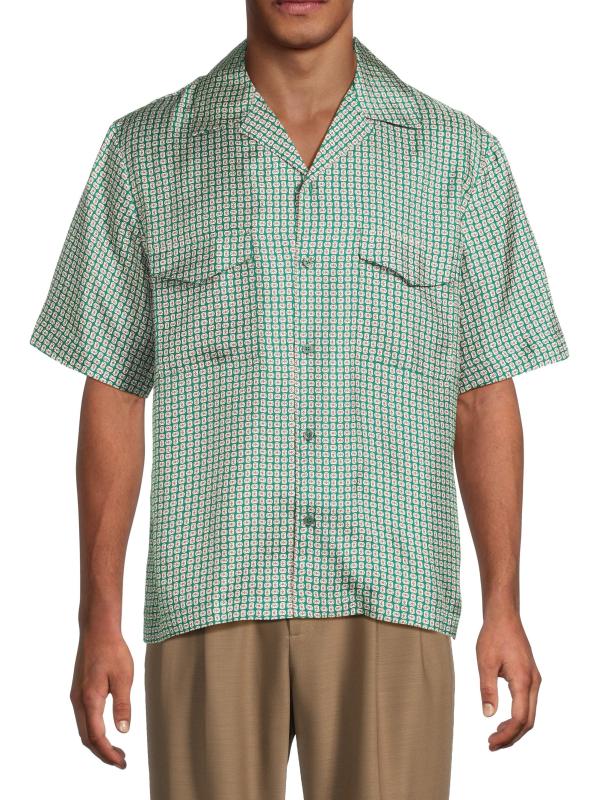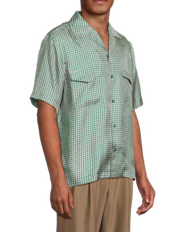 قميص Clarke هذا من SIMKHAI مصنوع من الحرير، ويتميز بطبعة ميدالية صغيرة.طوق المخيم أكمام قصيرة جيوب مرقعة على الصدر إغلاق بأزرار أمامية حرير بنسبة 100% تنظيف جاف مستوردة