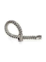 من مجموعة السلسلة الكلاسيكية. سوار جون هاردي المميز على شكل سلسلة، منسوج بشكل معقد من الفضة الإسترلينية، يُغلق بمشبك أسطواني بتصميم محفور متناسق.الفضة الإسترلينية مشبك يعمل بالضغط مستوردة