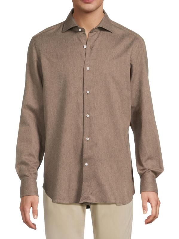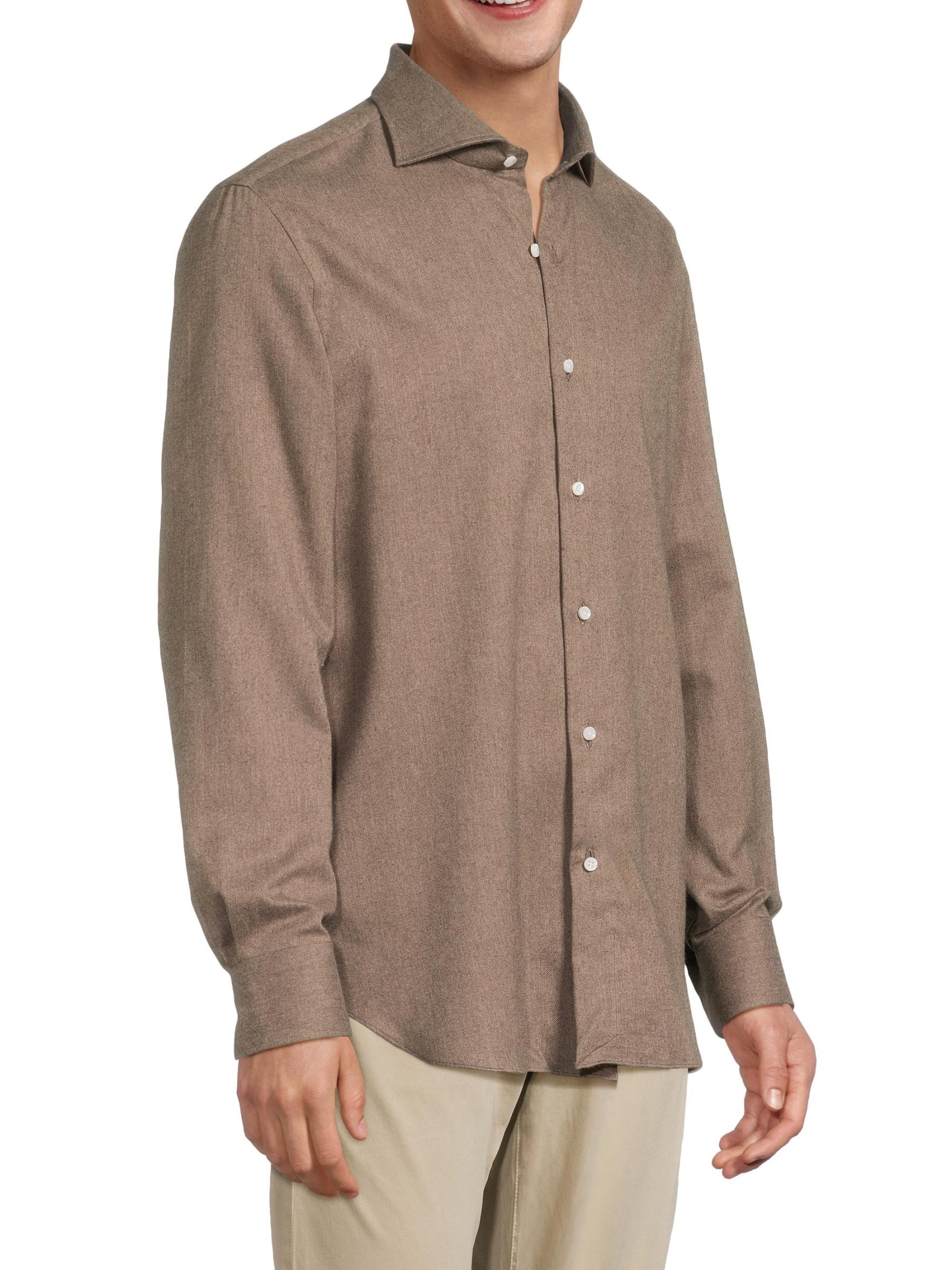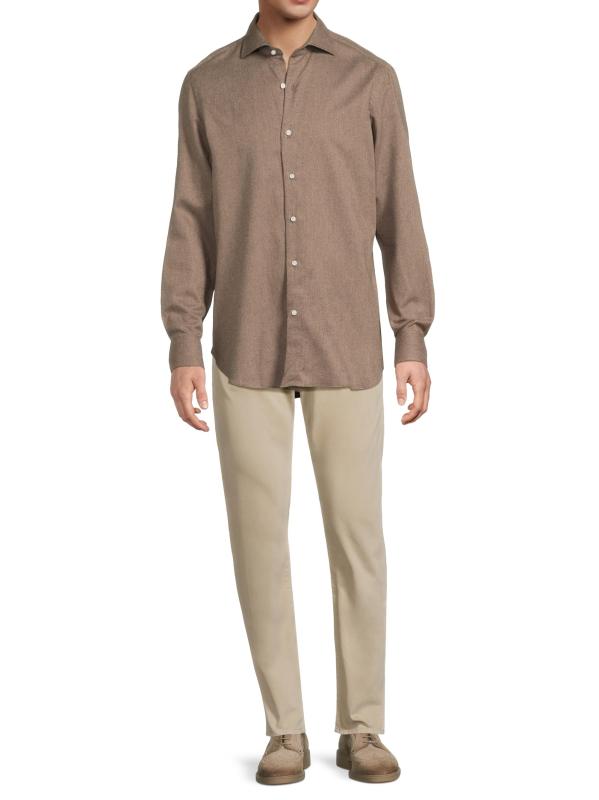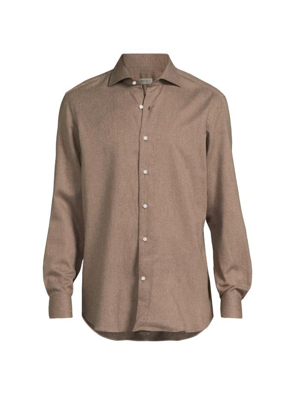 صُمم قميص Sartorio Napoli الكلاسيكي من القطن الإيطالي الناعم بياقة مدببة وأكمام طويلة وأساور بأزرار وإغلاق بأزرار أمامية.