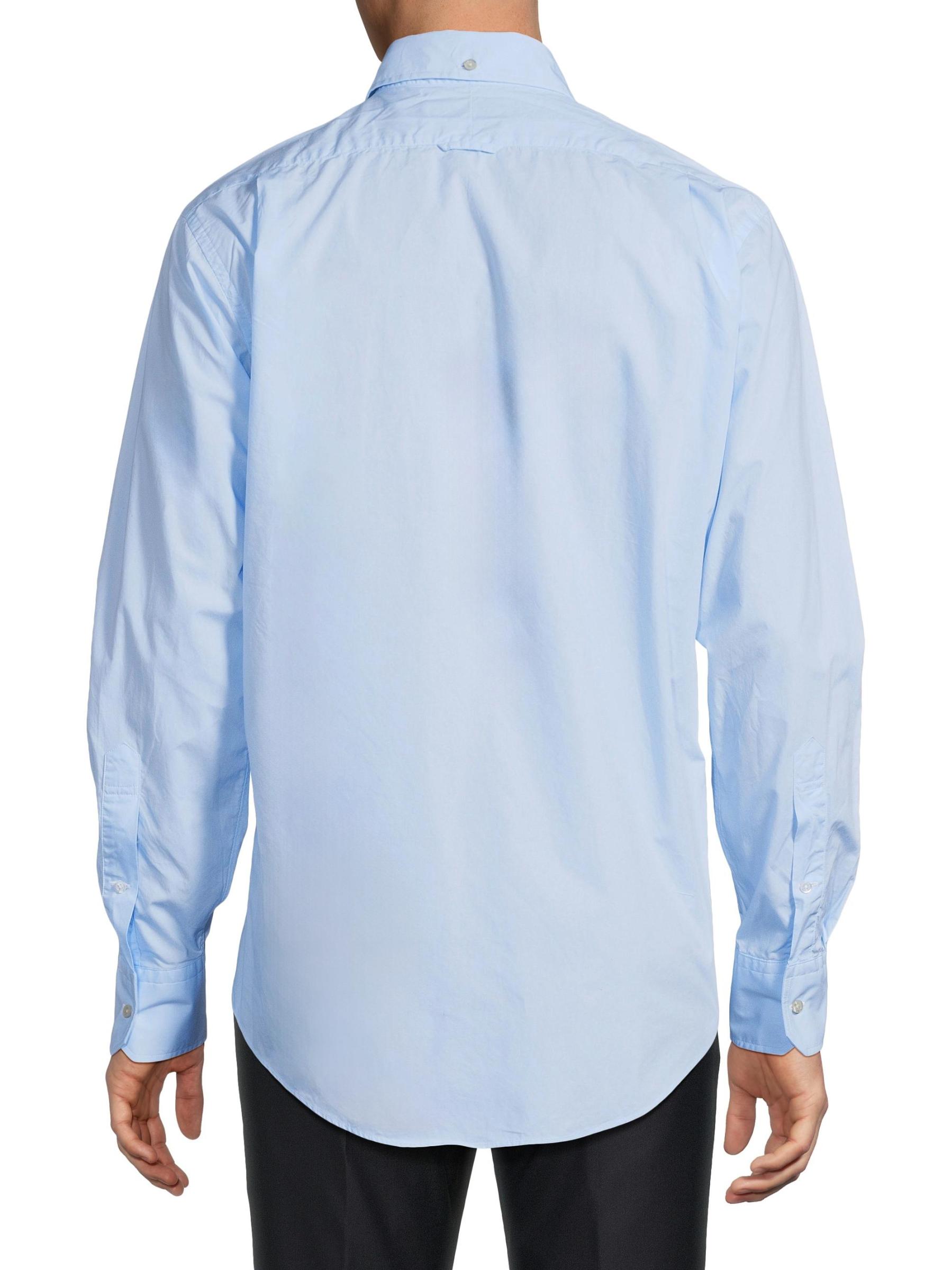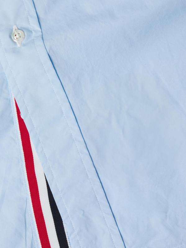 يُبرز قميص Thom Browne هذا، المصنوع من البوبلين القطني، صورة ظلية تقليدية بتفاصيل منظمة بما في ذلك ياقة واسعة بأزرار وجيب على الصدر وحاشية على شكل ذيل القميص. تزين رقعة الشعار المميزة الحافة اليسرى للحصول على لمسة نهائية عصرية.