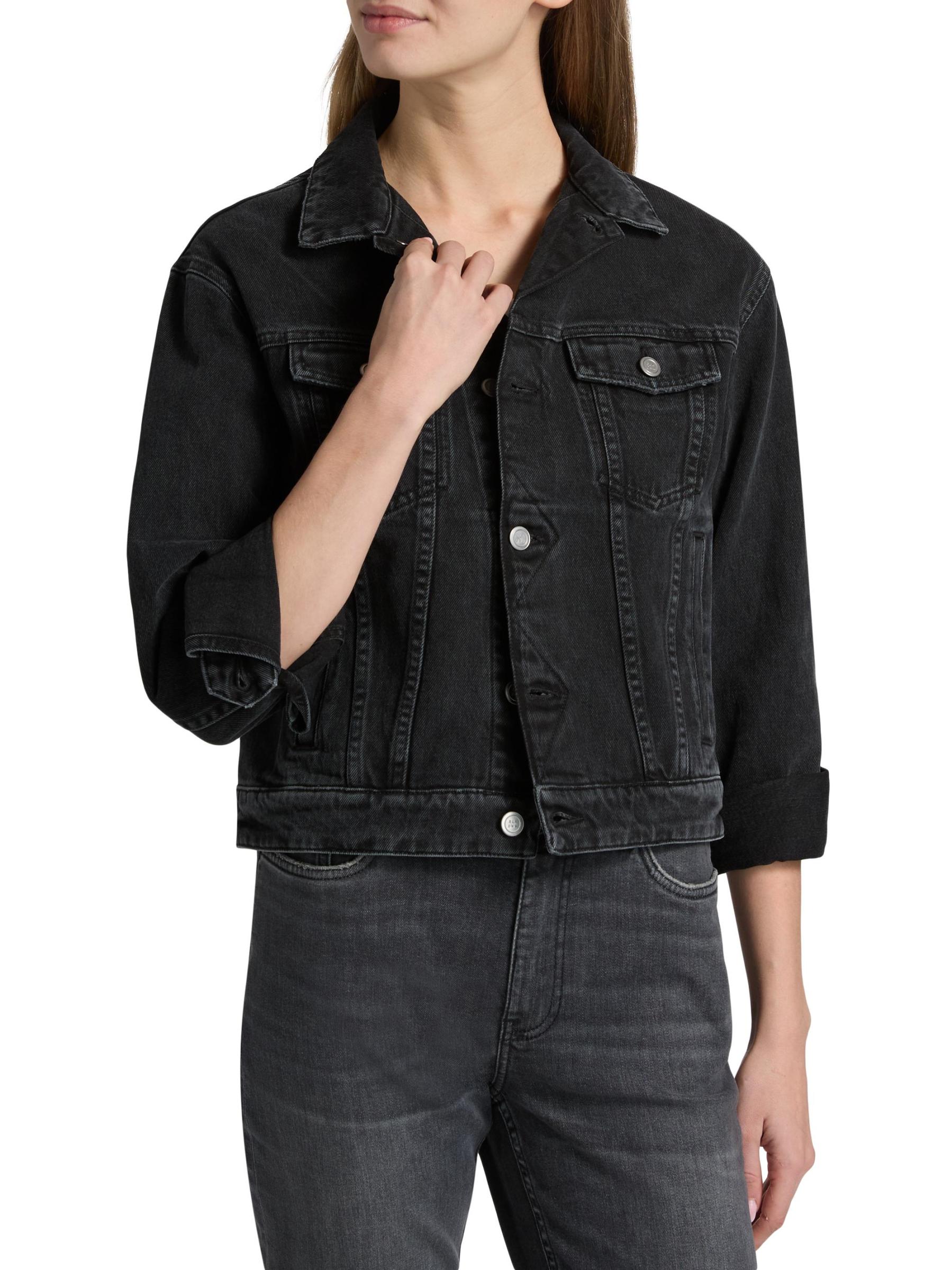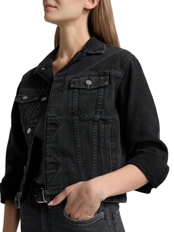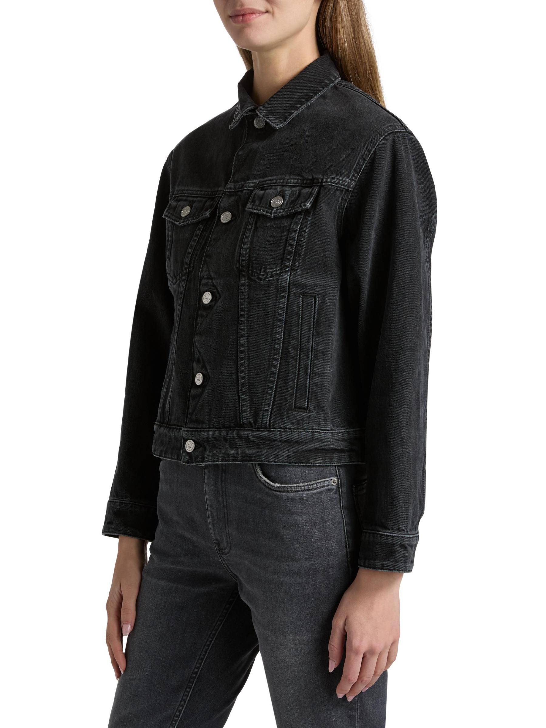 صُنعت هذه السترة من BLK DNM من الدنيم القطني، وهي مصممة بياقة واسعة وأكمام طويلة وفتحة أمامية بأزرار.