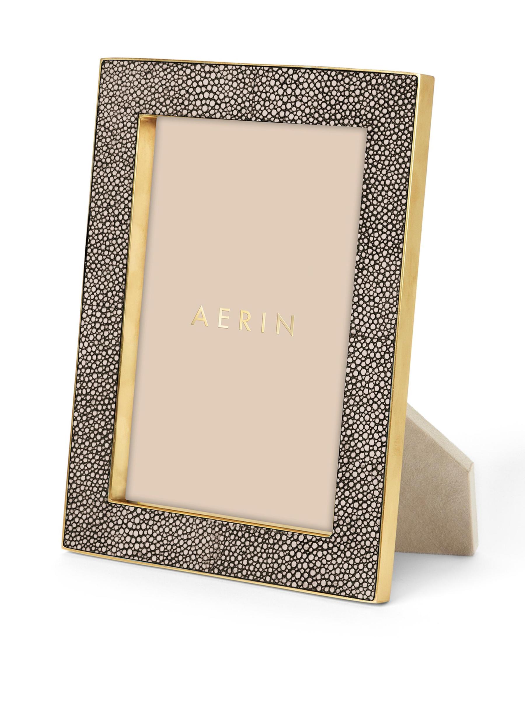 يجمع هذا الإطار الحديث والكلاسيكي بين الفخامة والملمس الذي يتميز به اللون الأخضر المنقوش والمزين بالنحاس المصقول. يعرض اللون متعدد الاستخدامات بأناقة صورة عائلية مفضلة أو قطعة فنية صغيرة. بطانة من الجلد المدبوغ.