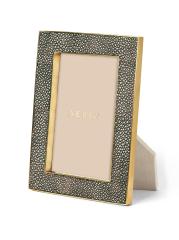 يجمع هذا الإطار الحديث والكلاسيكي بين الفخامة والملمس الذي يتميز به اللون الأخضر المنقوش والمزين بالنحاس المصقول. يعرض اللون متعدد الاستخدامات بأناقة صورة عائلية مفضلة أو قطعة فنية صغيرة. بطانة من الجلد المدبوغ.تستوعب صورة فوتوغرافية بعرض 4 بوصة × 6 بوصة ارتفاع أخضر/نحاسي مستوردة