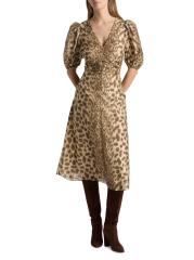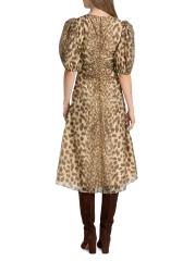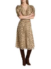 فستان كلود متوسط الطول بأكمام منفوخة بنقشة جلد الفهد