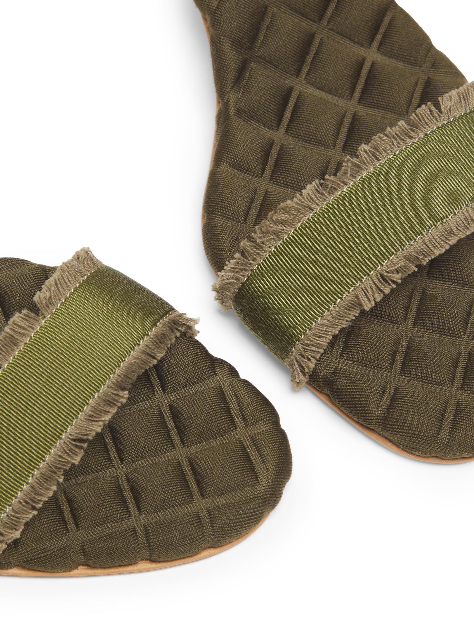 صُنع هذا الصندل من Aera يدويًا من قبل حرفيين في فينيتو بإيطاليا من مواد نباتية، ويتميز بتصميم سلينغ باك وبطانة مبطنة مميزة. تم الانتهاء من هذا التصميم بأحزمة من الحرير المحفور وكعب ستيليتو أنيق.مصنوعة من مواد نباتية معتمدة إصبع مفتوح حزام كاحل مطاطي سهل الارتداء الجزء العلوي مصنوع من قماش محبوك بطانة نسيجية نعل مبطن نعل مطاطي حقيبة الغبار متضمنة تنظيف البقع صُنع في إيطاليا