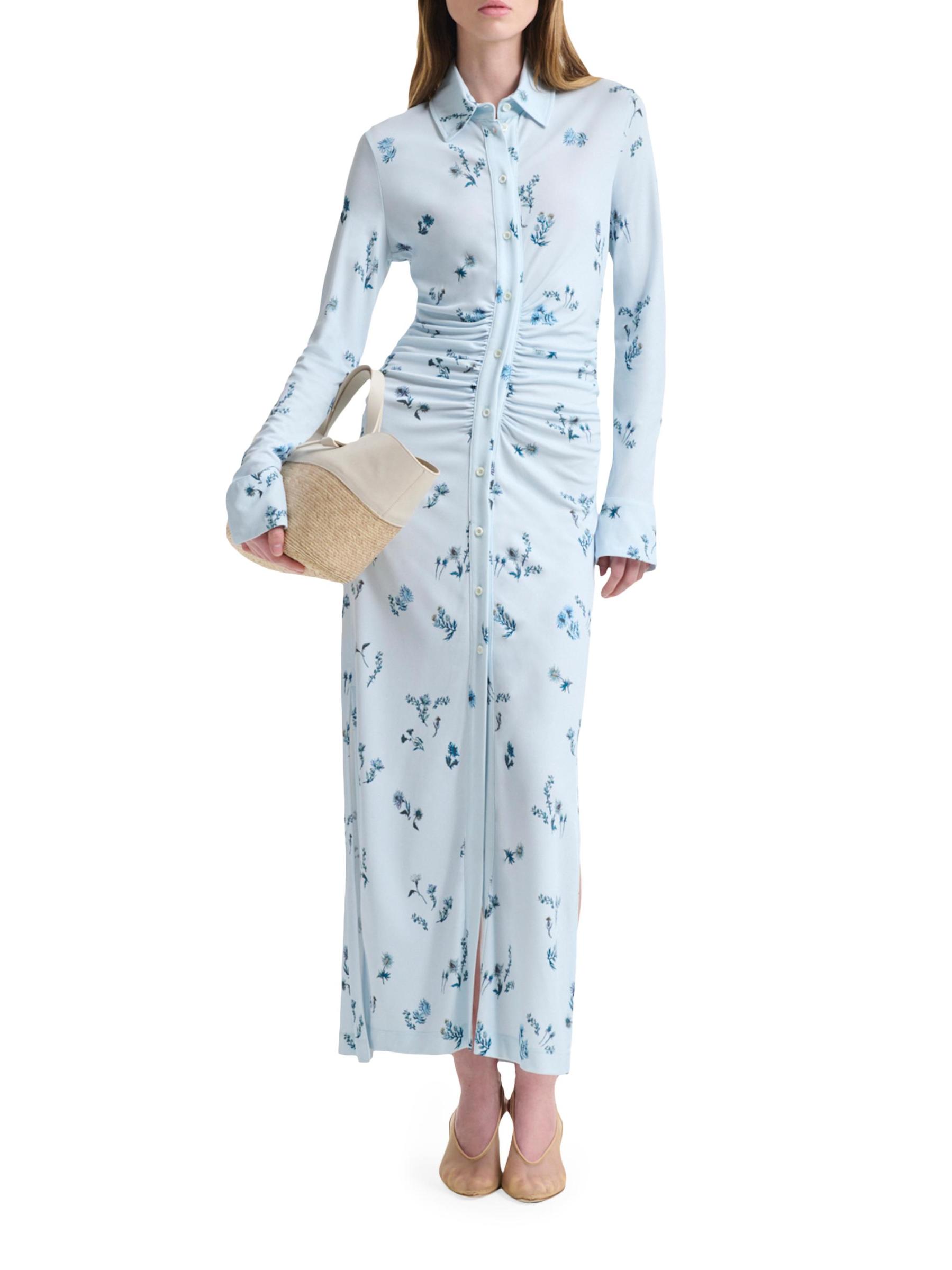 تم تصميم قميص كلوديا المزركش من Altuzarra بنقشة الأزهار الزاهية وياقة واسعة وأساور بأزرار.