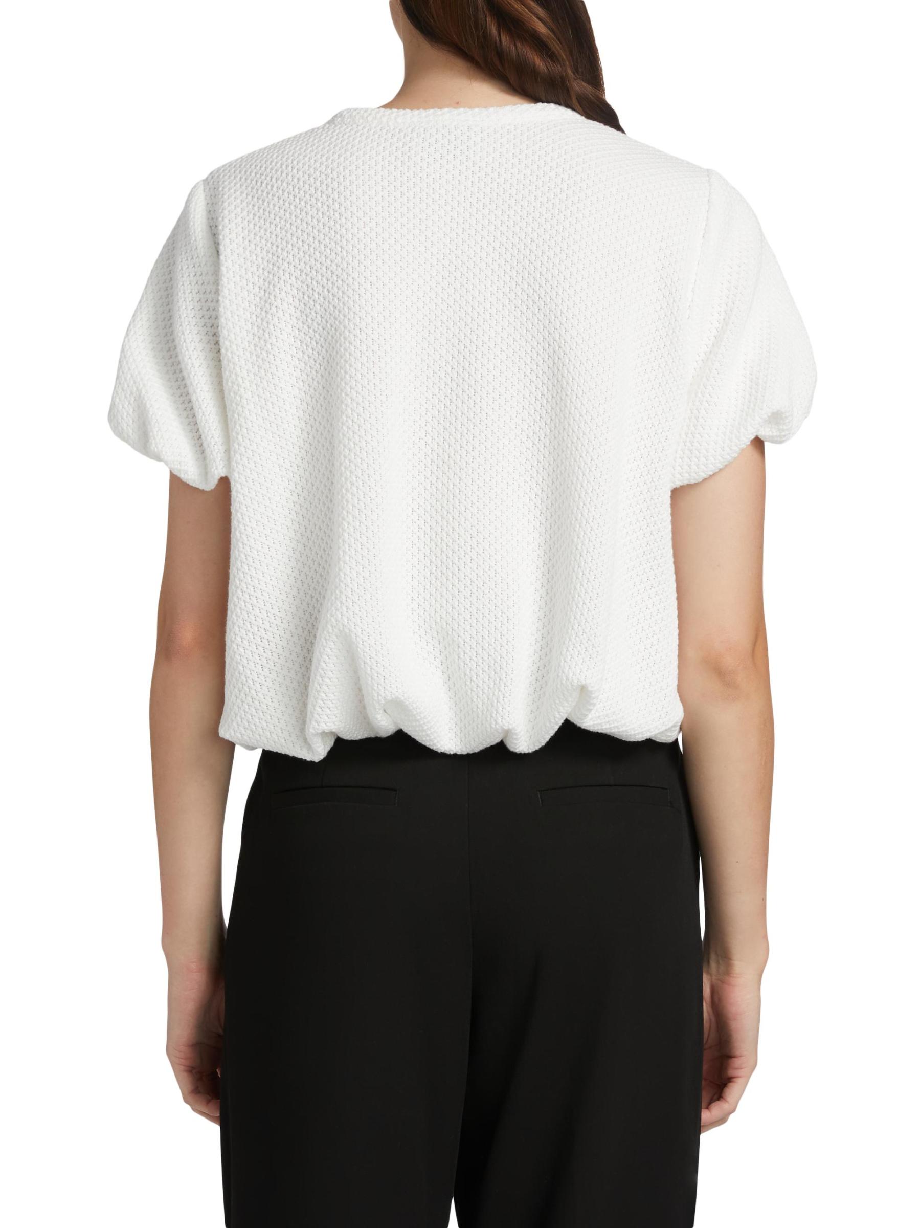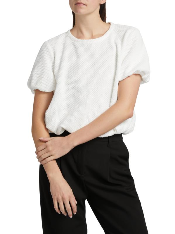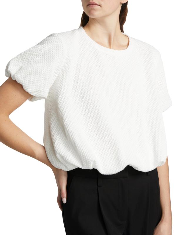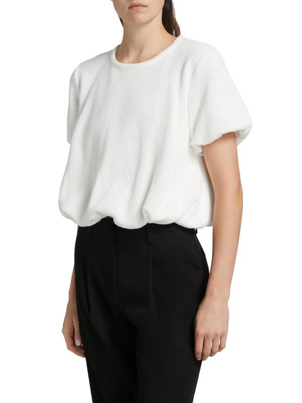 من مجموعة جست أ بينش. تتميّز بلوزة كلوفر من AnonlyChild's Clover المصنوعة من مزيج القطن الخفيف بحاشية متموجة وأكمام قصيرة وياقة كلاسيكية مستديرة.