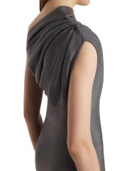 يتميز فستان كوكتيل كوست بكتف واحد من Khaite، المحبوك من مزيج القطن بلمسة معدنية لامعة، بكشكش للشكل.