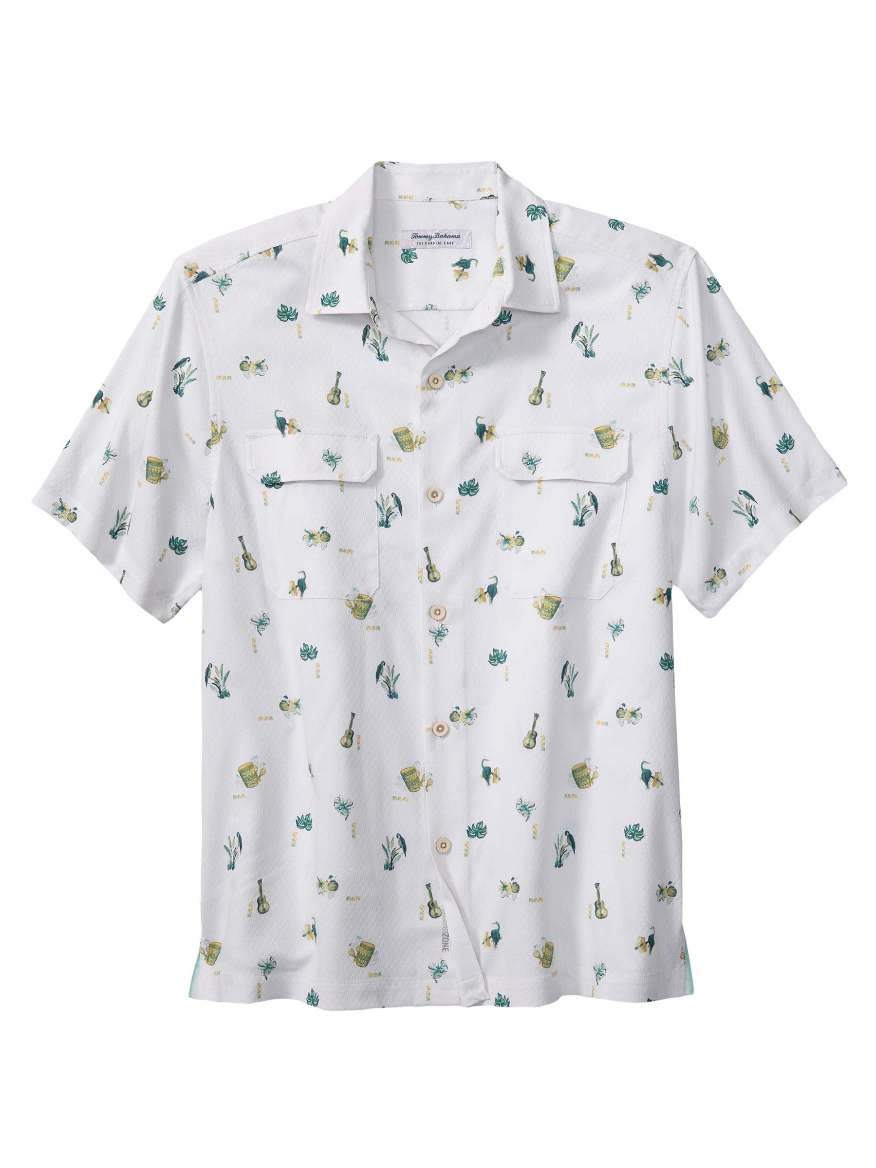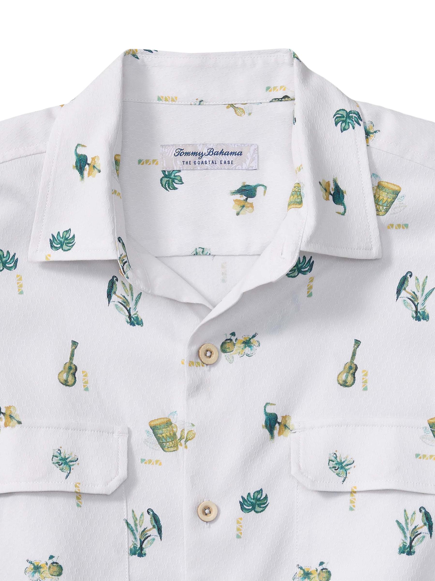 يتميز قميص Coastal Ease بأكمام قصيرة من Tommy Bahama بنسيج مقاوم للرطوبة ومقاوم للتجاعيد ومزين بطبعة مستوحاة من المناطق الاستوائية.