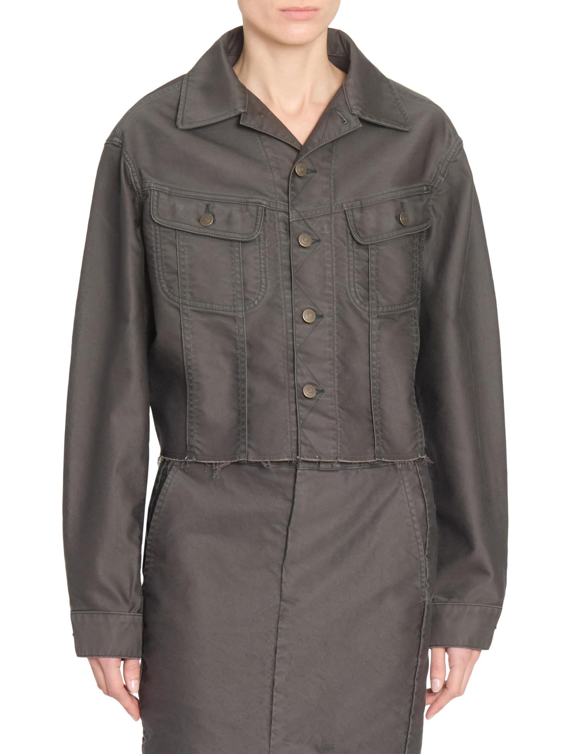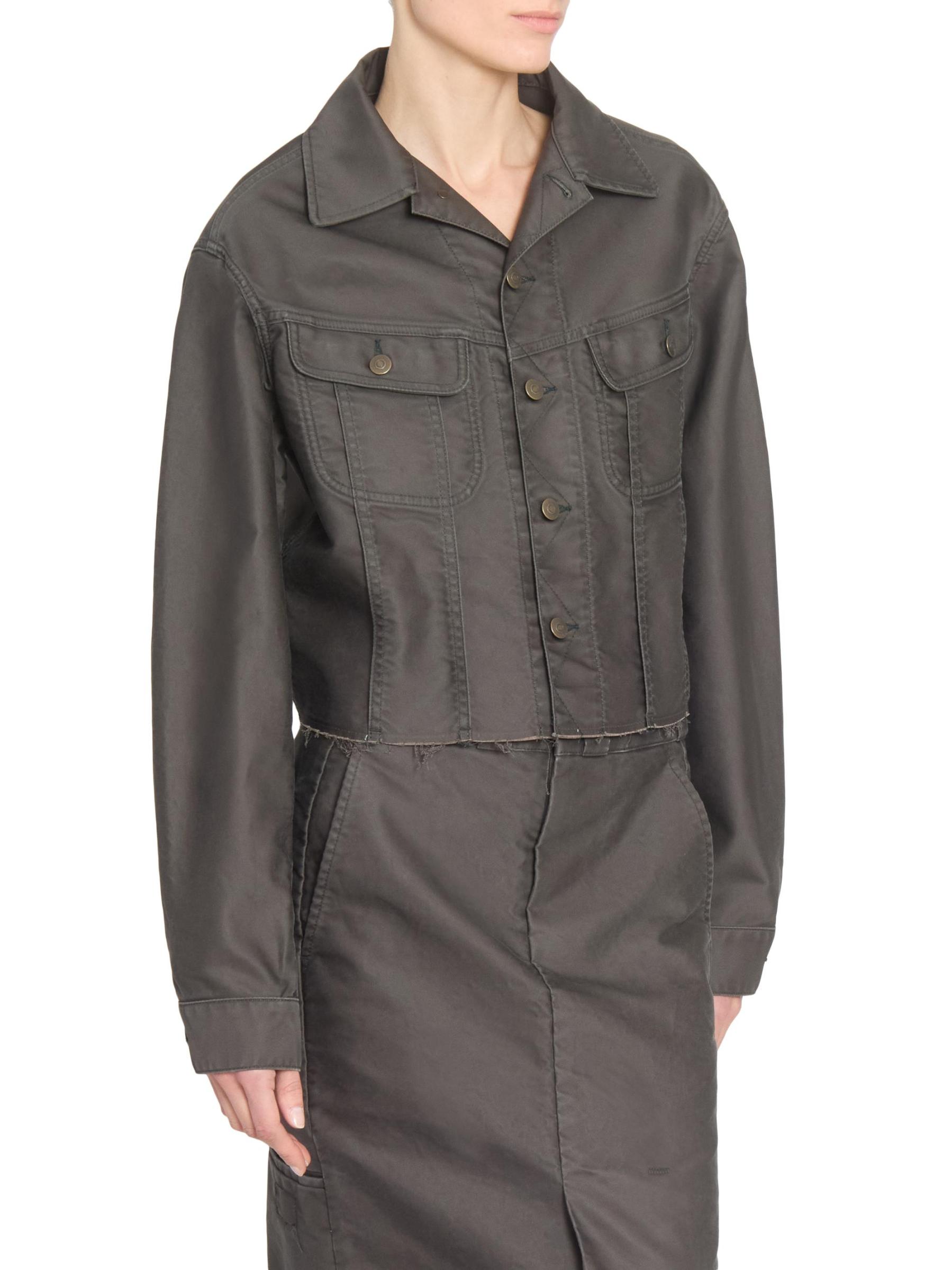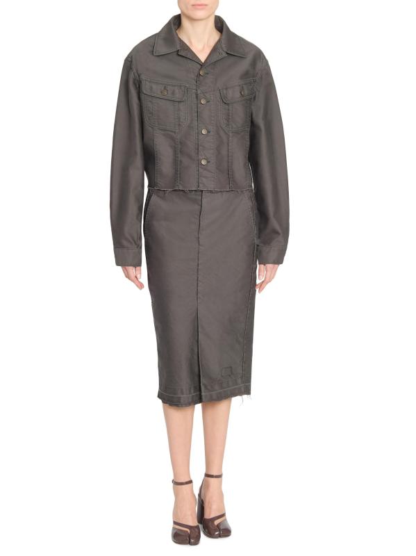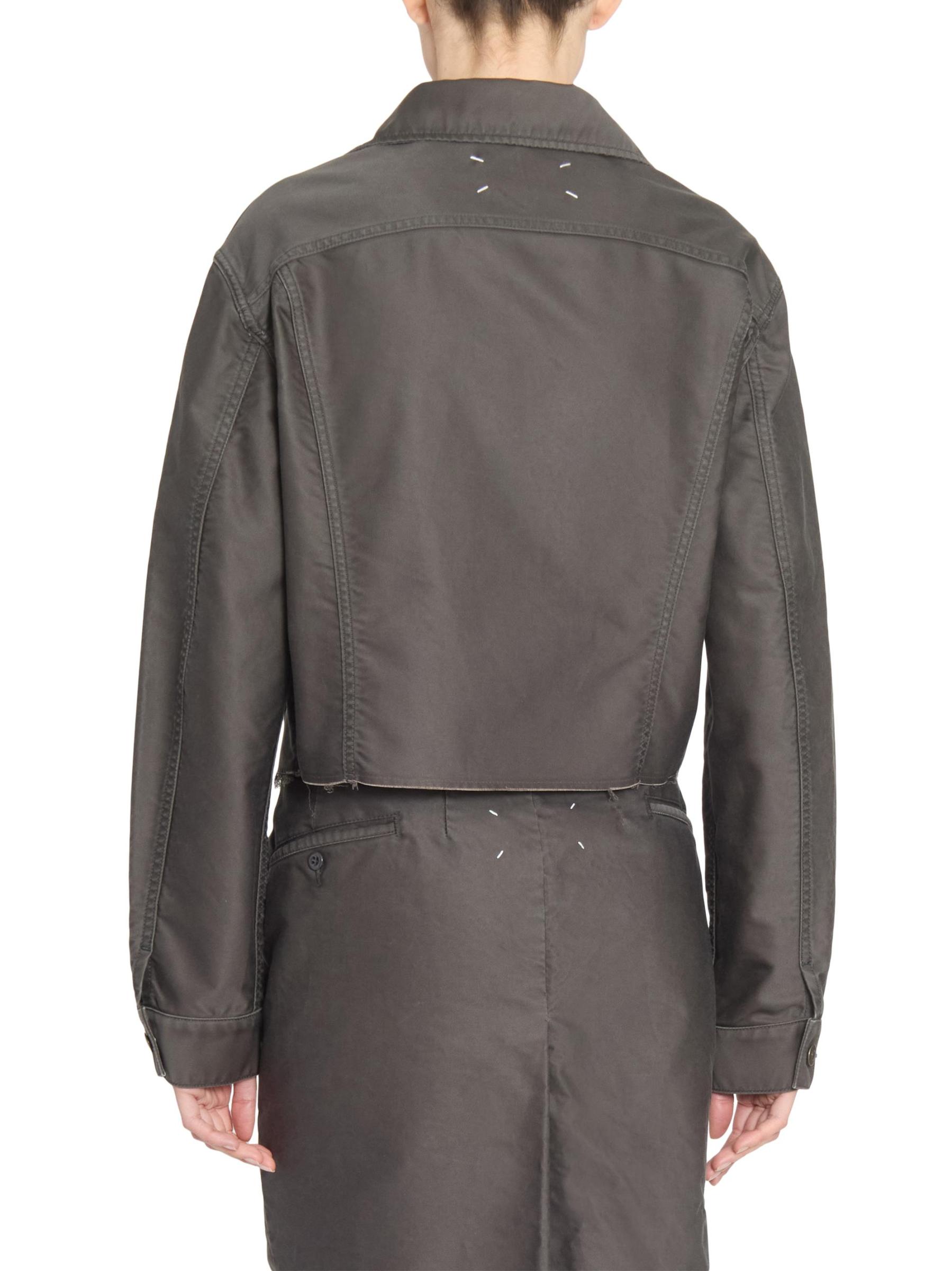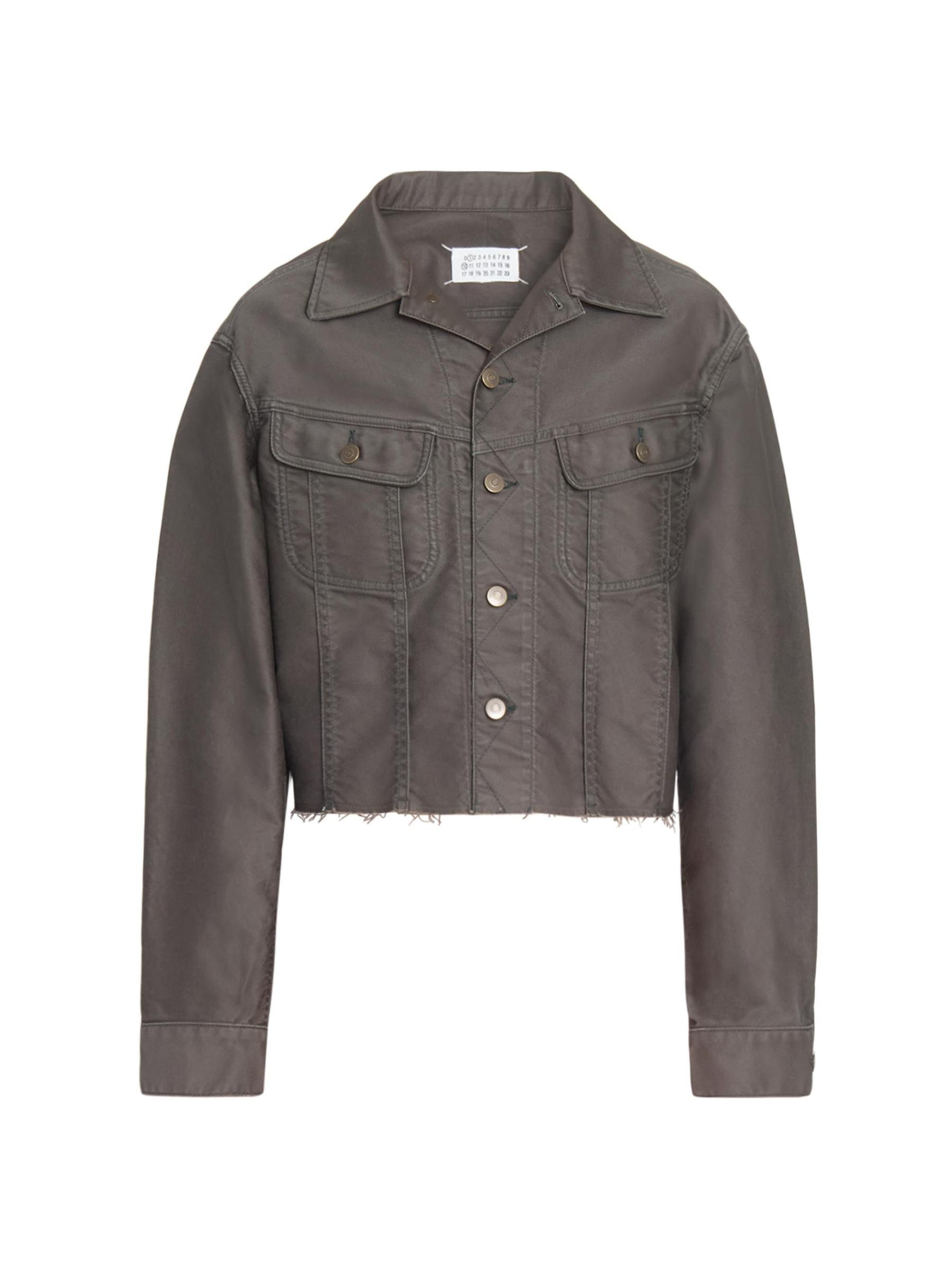 صُنع جاكيت الدنيم المطلي من Maison Margiela في إيطاليا من القطن الذي يتميز بدرزات مسطحة وحافة خشنة.