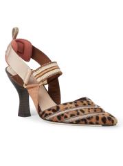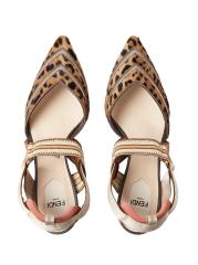 حذاء Fendi هذا مصنوع من الفرو ويتميز بجزء علوي بنقشة جلد الفهد مع قاعدة كعب مبطنة وأشرطة قابلة للسحب. يمزج التصميم، الذي تم تصميمه على كعب 85 مم، بين الملمس والهيكل المنحوت.