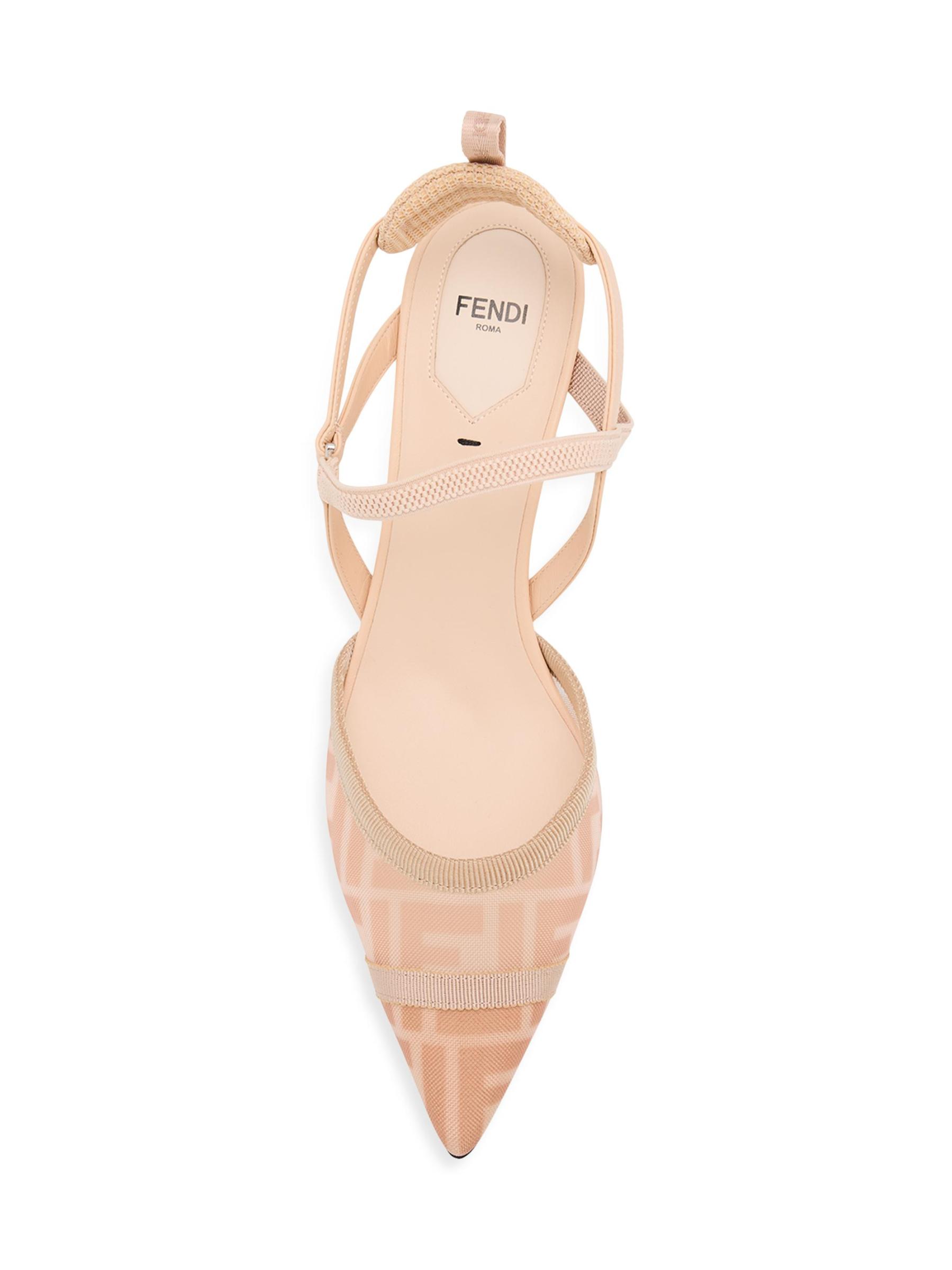 تتميز مضخات كوليبري لايت سلينج باك الشفافة من فندي بشعار Double-F الخاص بالمنزل. صُنع هذا الزوج في إيطاليا، ويتميز بمقدمة مدببة وحزام حبال مبطن.