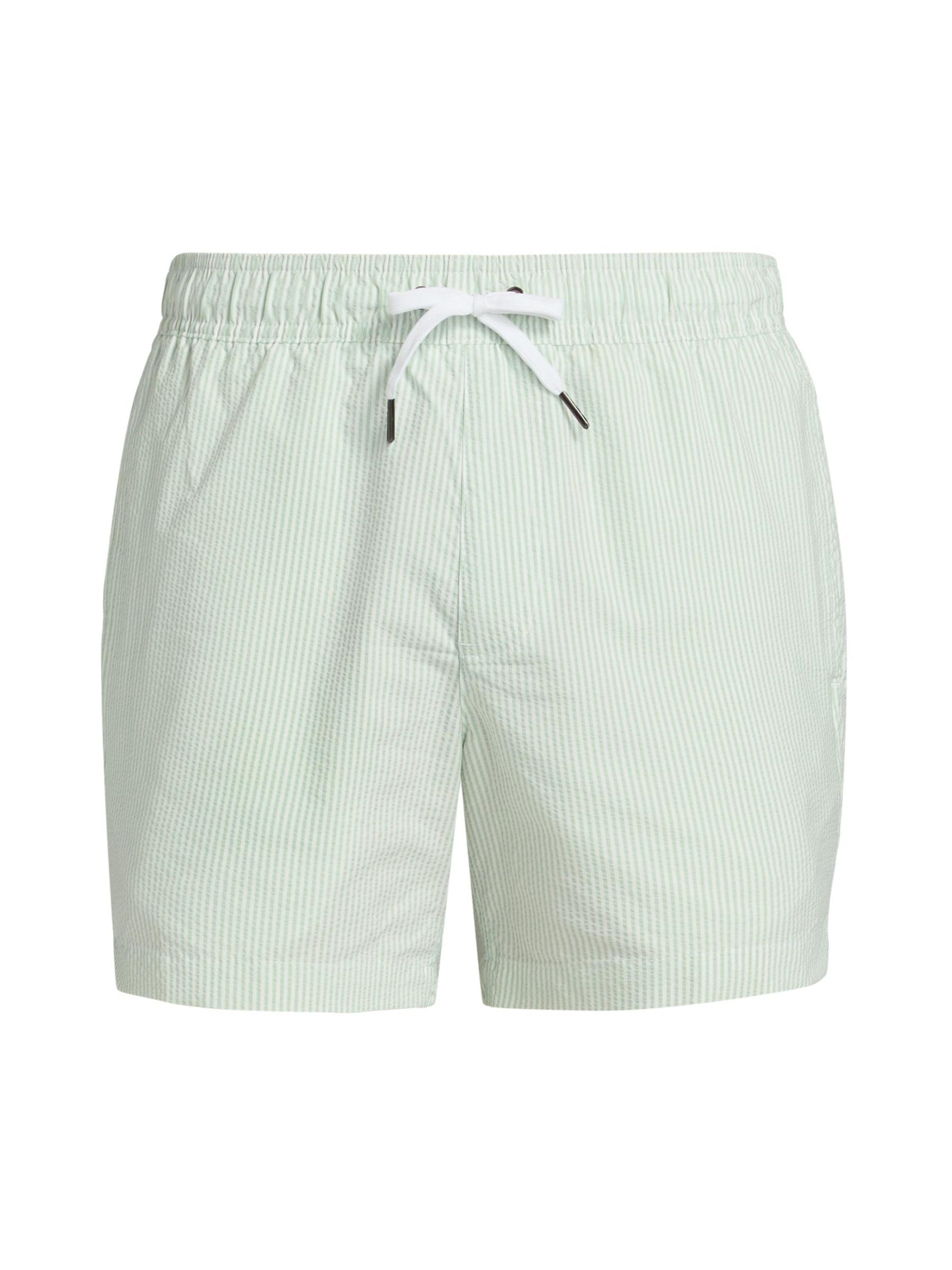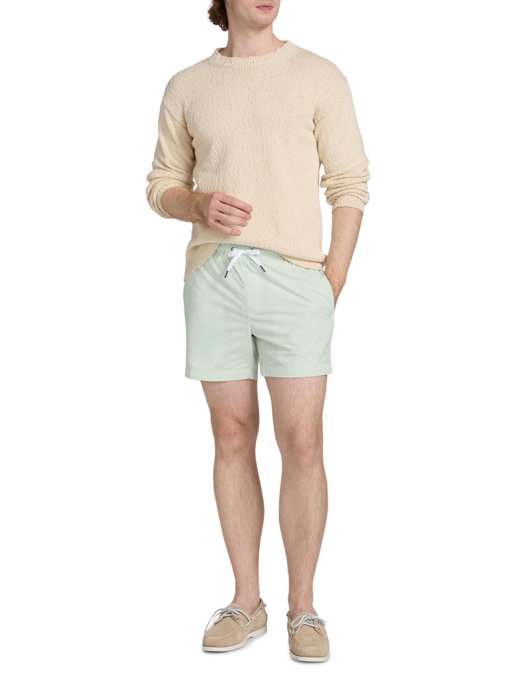 يتميز شورت السباحة هذا من ساكس فيفث أفينيو بتصميم سيرسكر وخصر برباط.
