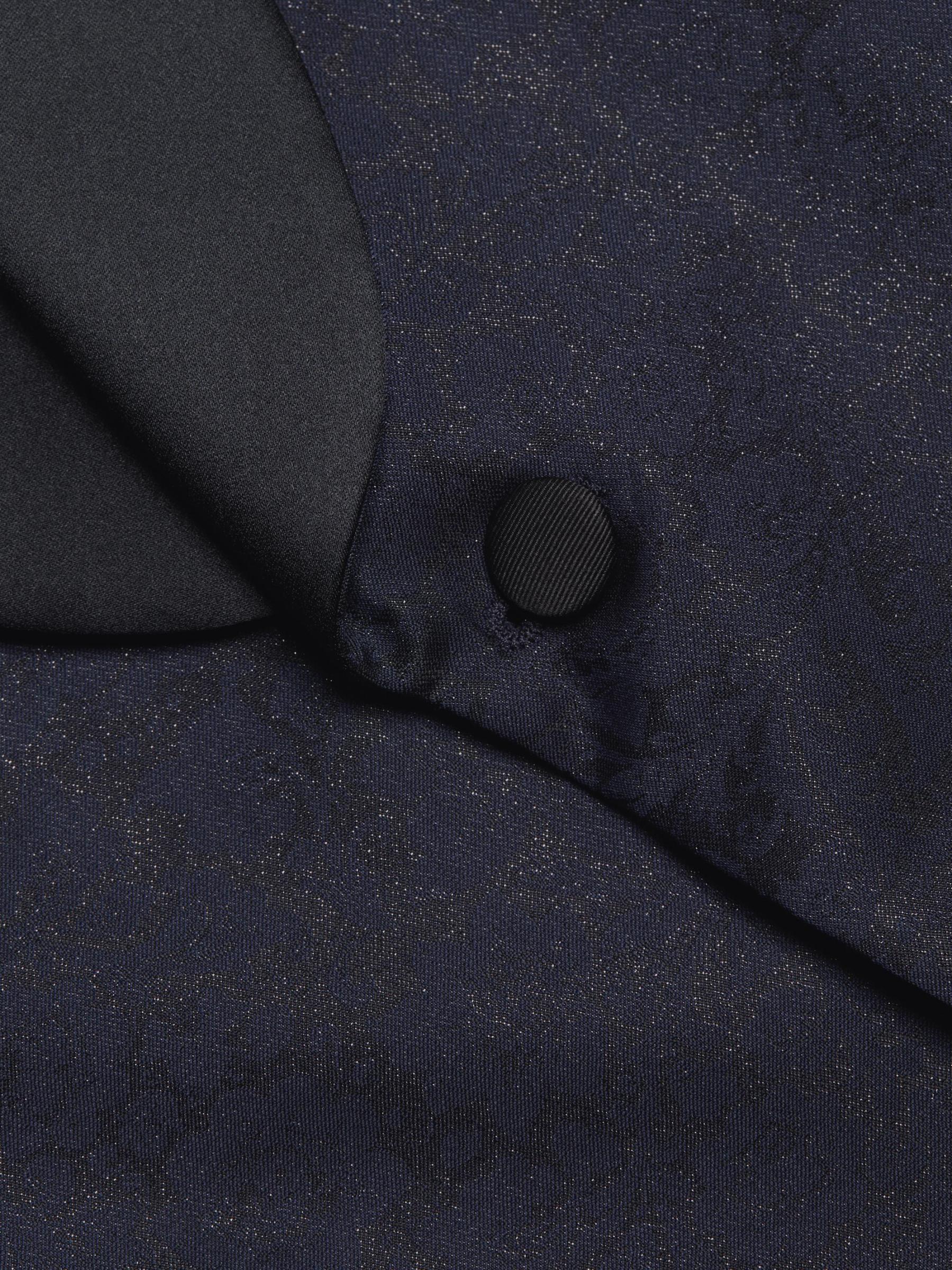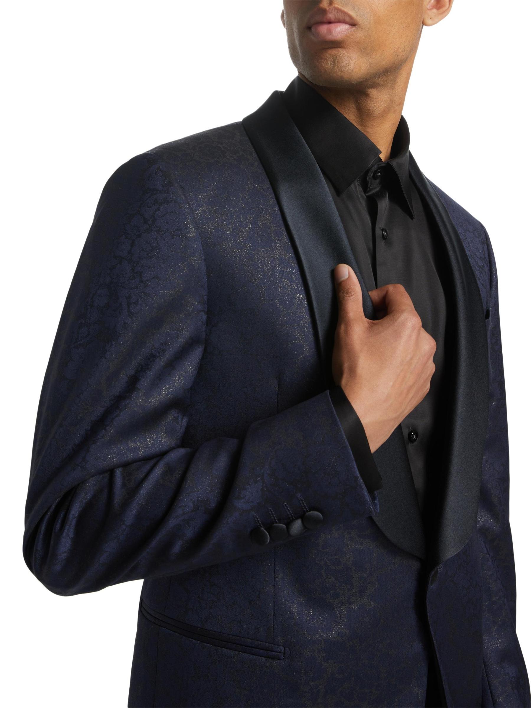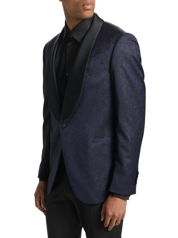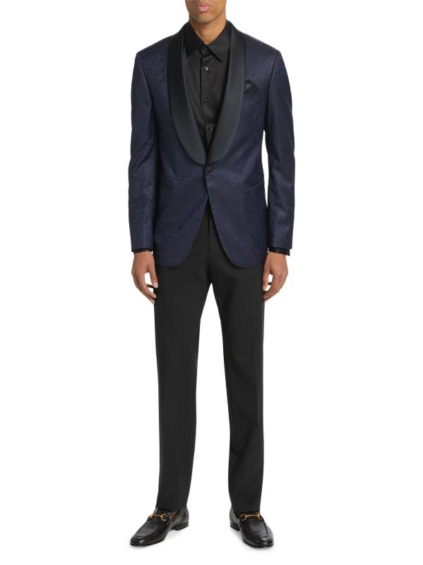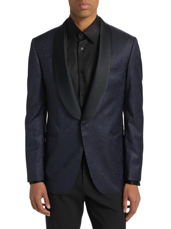 يعزز التأثير اللامع نمط الجاكار الزهري على جاكيت ساكس فيفث أفينيو هذا. تم تصميم هذا التصميم المصمم خصيصًا من مزيج من الصوف مع إغلاق كلاسيكي بزر واحد.