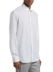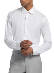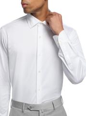 قميص Saks Fifth Avenue هذا مصنوع من النايلون الصلب القابل للتمدد لشعور مريح. تُضفي الياقة الواسعة والأكمام الطويلة مع أساور أسطوانية بأزرار وحافة على شكل ذيل القميص تفاصيل تقليدية لهذا النمط المزوّد بأزرار أمامية.