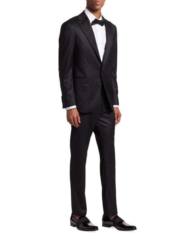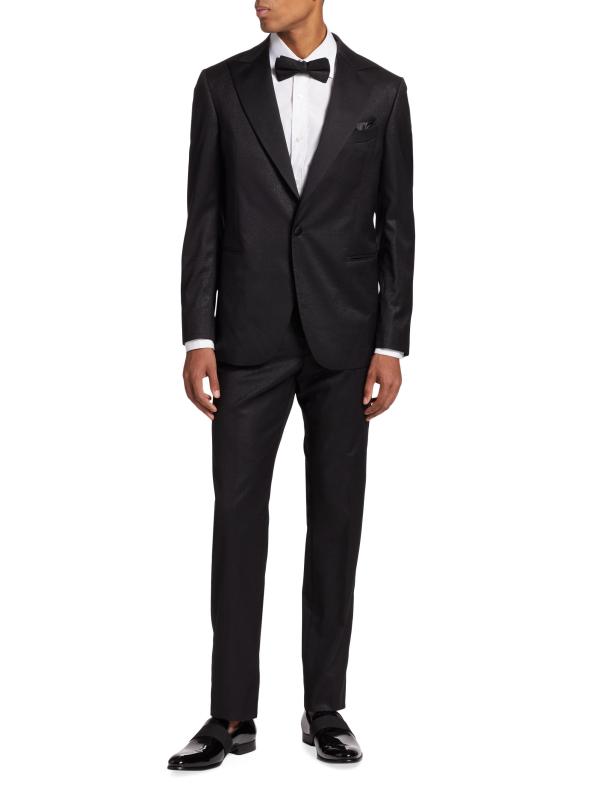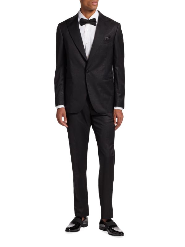 تتميّز بدلة Saks Fifth Avenue COLLECTION المكونة من قطعتين والمصنوعة من مزيج من الصوف بزخارف لامعة منسوجة في القماش.
