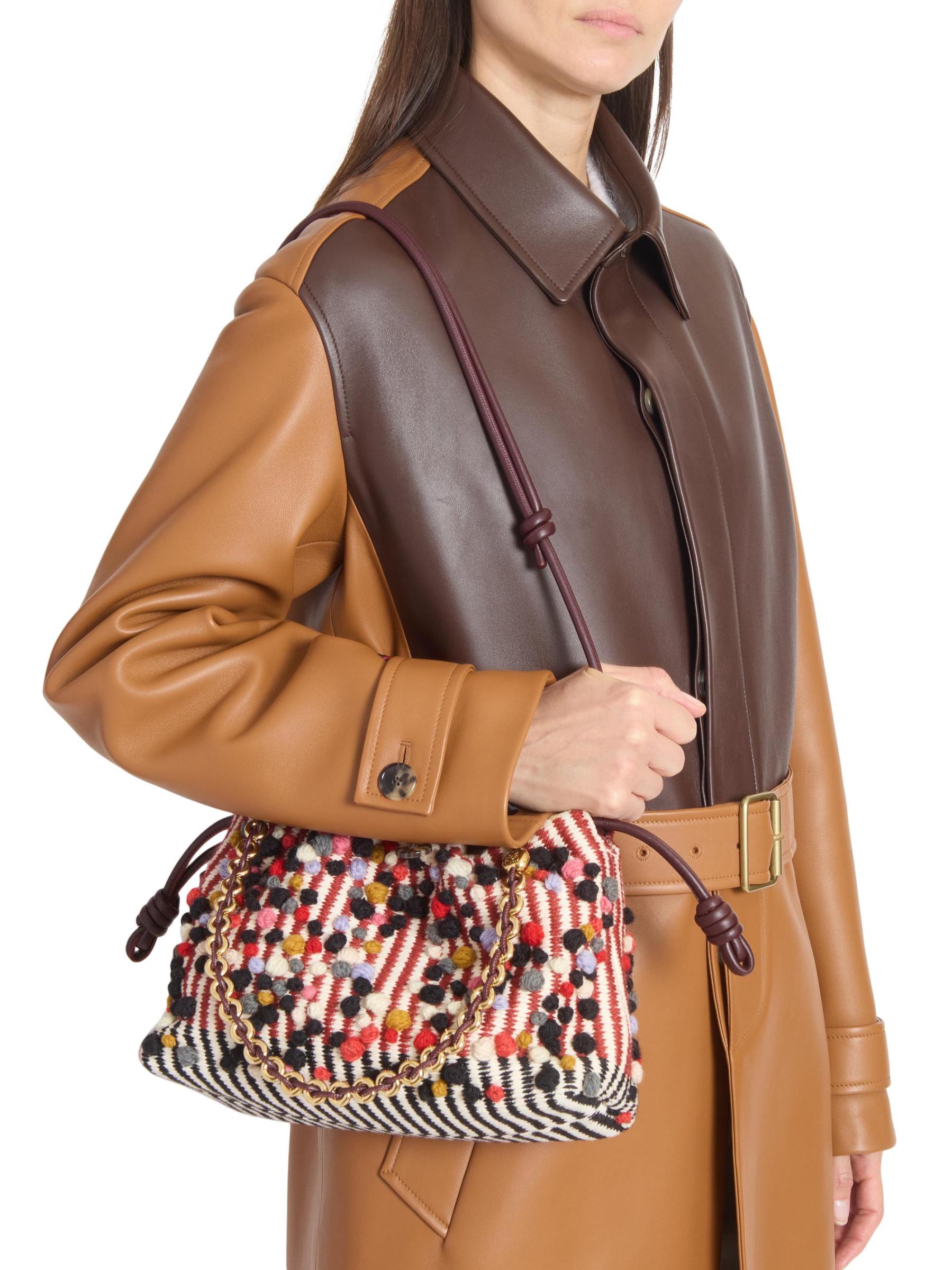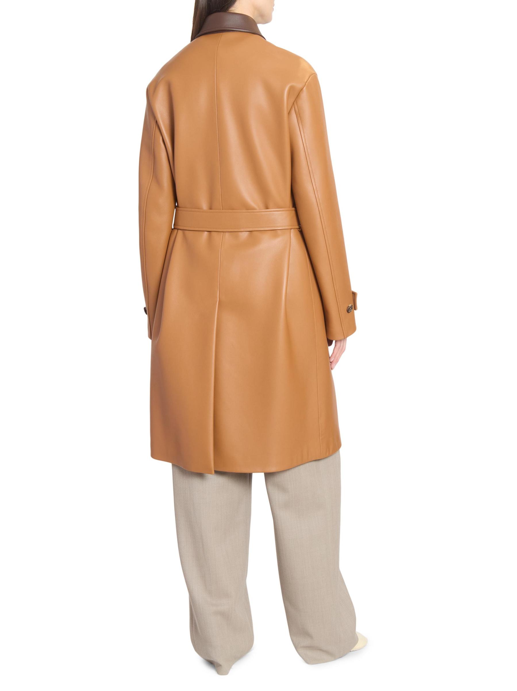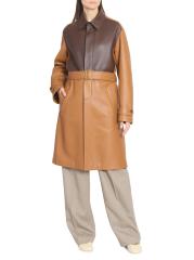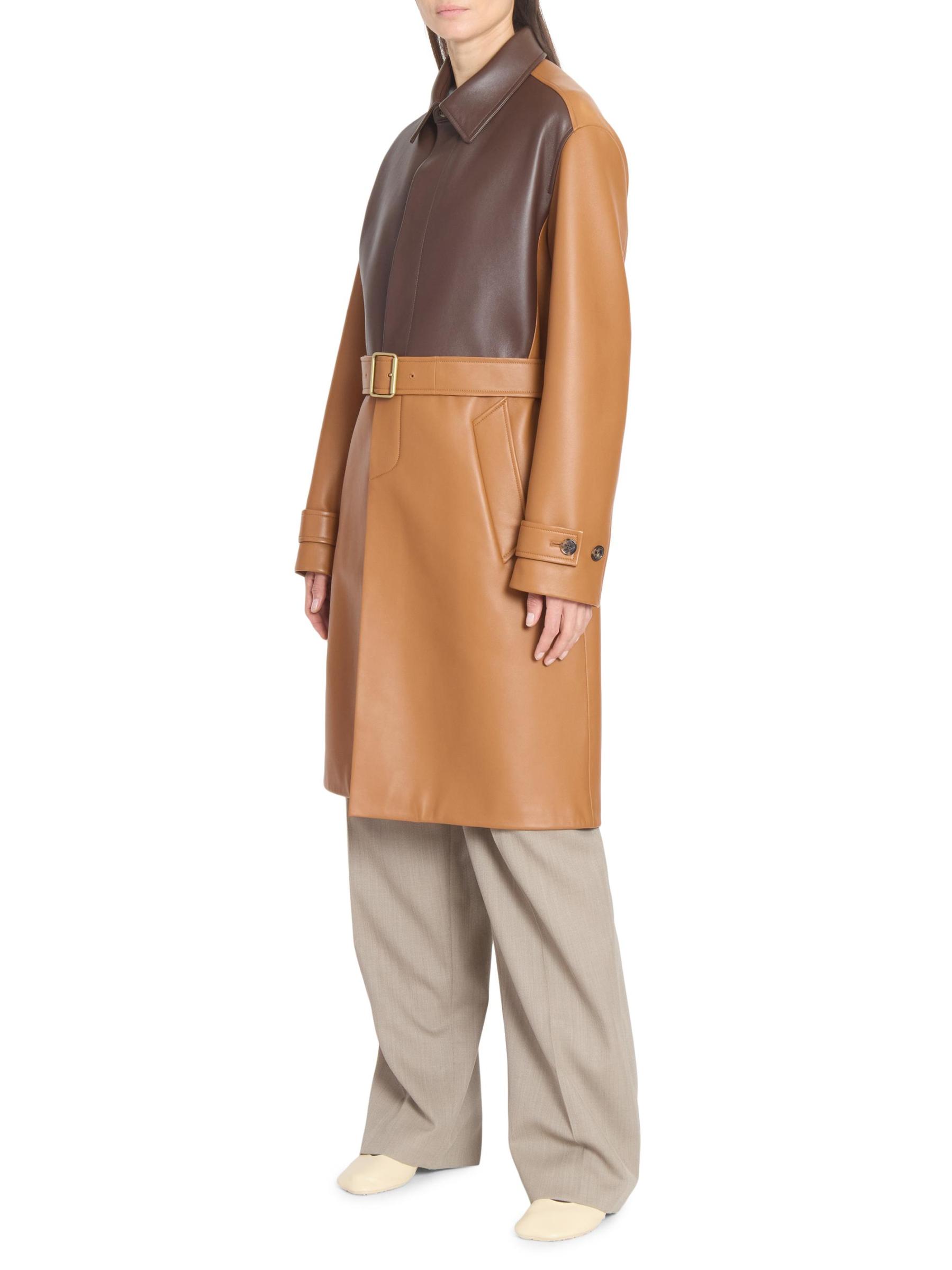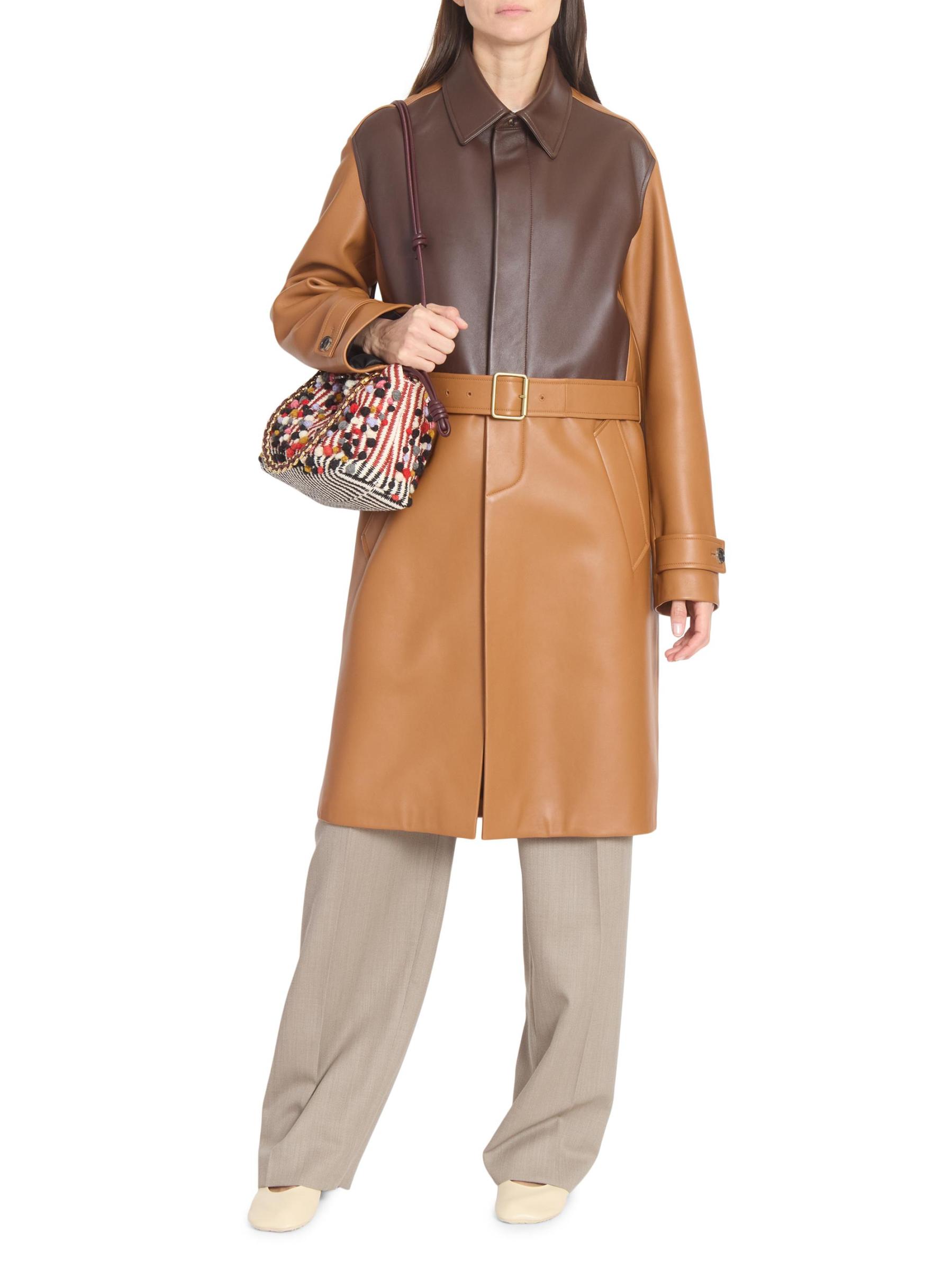 يُبرز معطف LOEWE المصنوع من الجلد التصميم بطراز ثنائي اللون وياقة واسعة وجيوب جانبية.