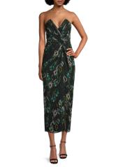 يتميز فستان Katie May بدون حمالات بطبعة نابضة بالحياة مستوحاة من جلد الثعبان بلمسة كشكشة في الأمام.رقبة على شكل حرف V بدون حمالات إغلاق بسحّاب خلفي 100% بوليستر تنظيف جاف صُنع في الولايات المتحدة الأمريكية