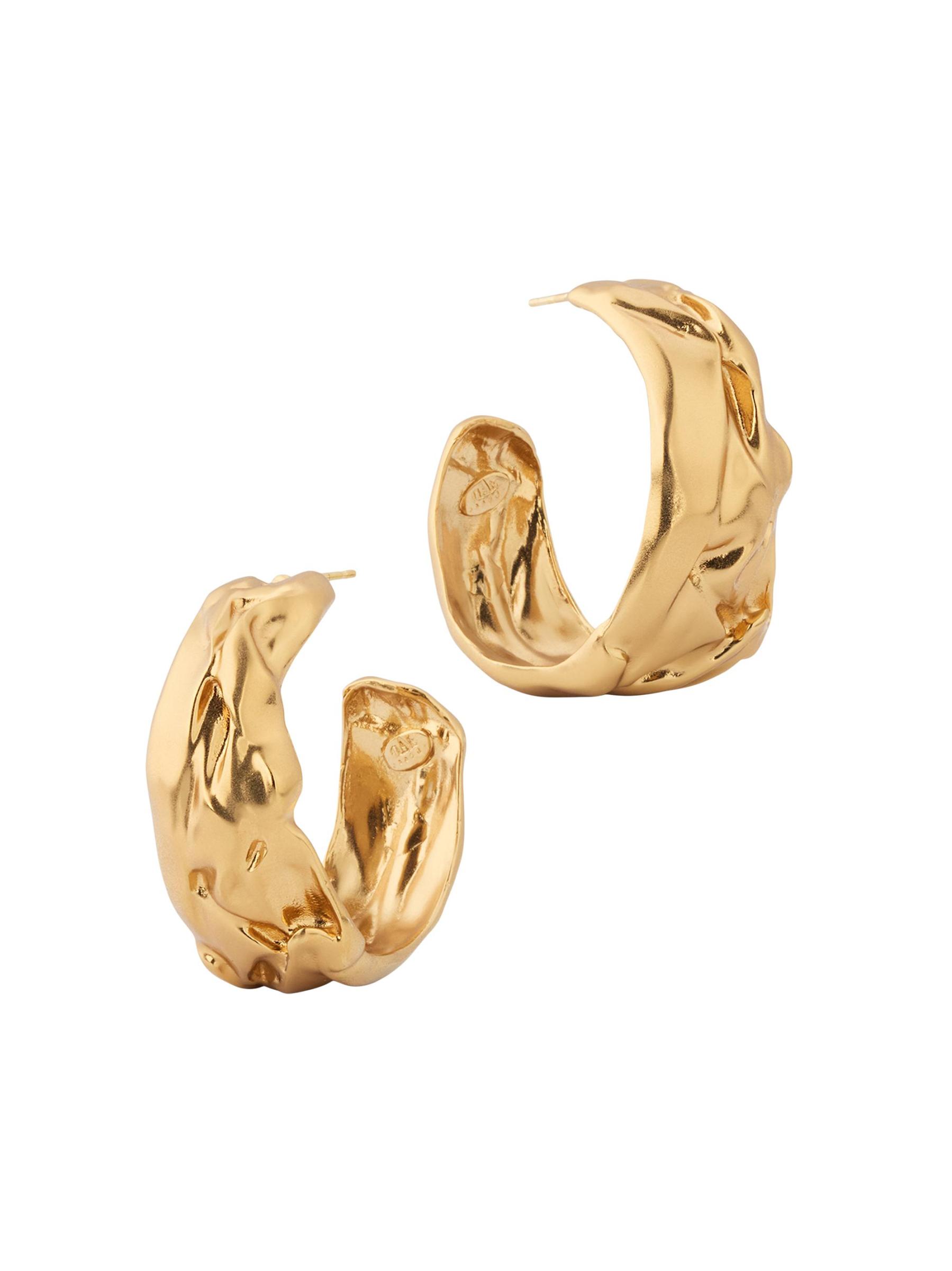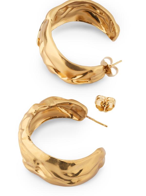 تم تصميم أقراط Compression Hoop من Gas Bijoux بقوام مجعد فريد من نوعه، وهي مطلية بالذهب عيار 24 قيراطًا شديد اللمعان.نحاس مطلي بالذهب عيار 24 أرسل مرة أخرى صُنع في فرنسا