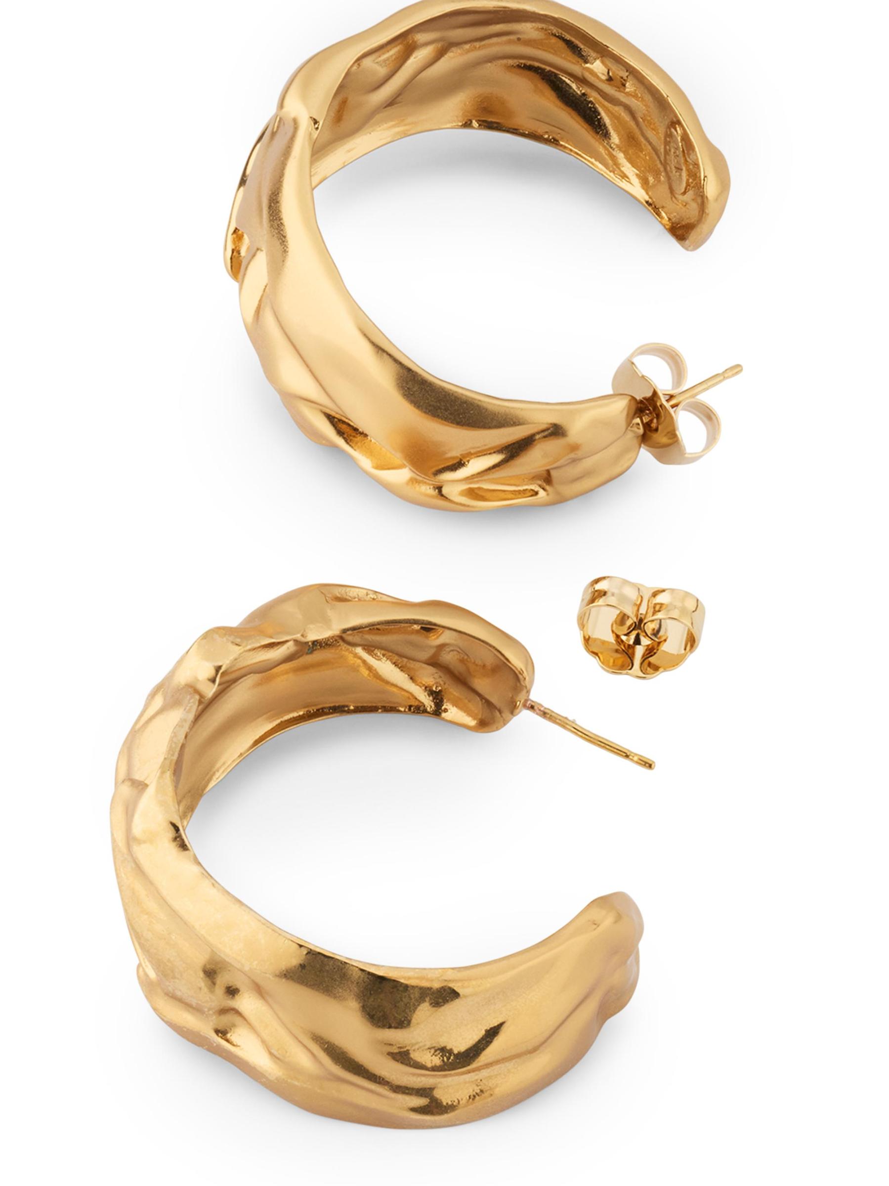 تم تصميم أقراط Compression Hoop من Gas Bijoux بقوام مجعد فريد من نوعه، وهي مطلية بالذهب عيار 24 قيراطًا شديد اللمعان.