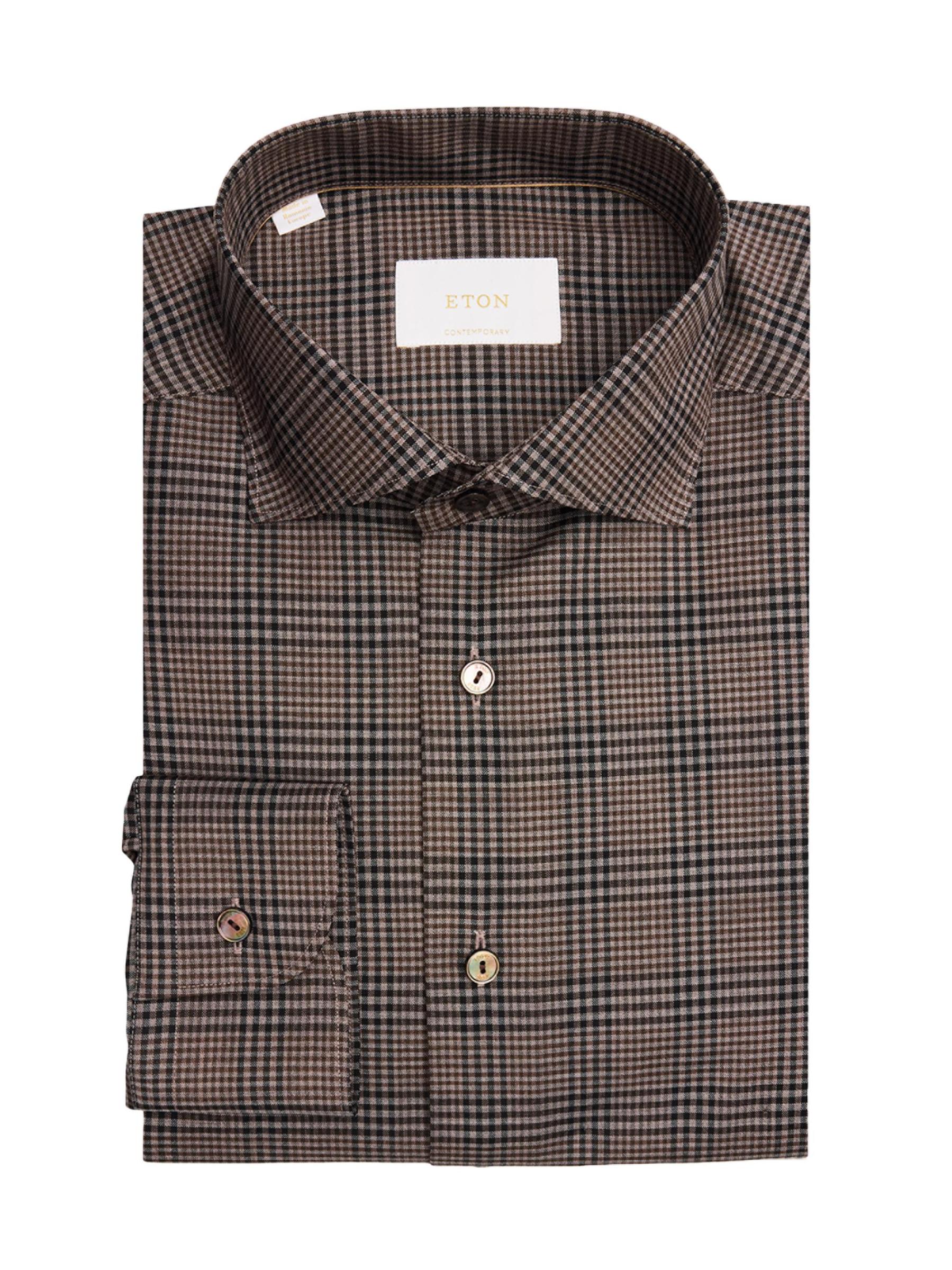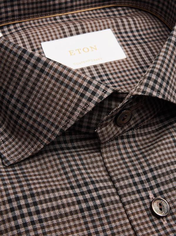 صُنع قميص إيتون الرسمي ذو المقاس المعاصر من صوف ميرينو عالي الأداء والمقاوم للتجاعيد بنمط منقوش بلون مغاير.