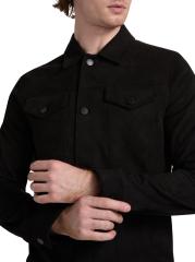 جاكيت Cooper trucker من Monfrère مصنوع من الجلد المدبوغ ويتميز بياقة كلاسيكية واسعة وأكمام طويلة وإغلاق بأزرار أمامية.طوق سبريد أكمام طويلة جيوب قابلة للطي بأزرار على الصدر إغلاق بأزرار أمامية جلد الغزال بنسبة 100% يُغسل في الغسالة مستوردة