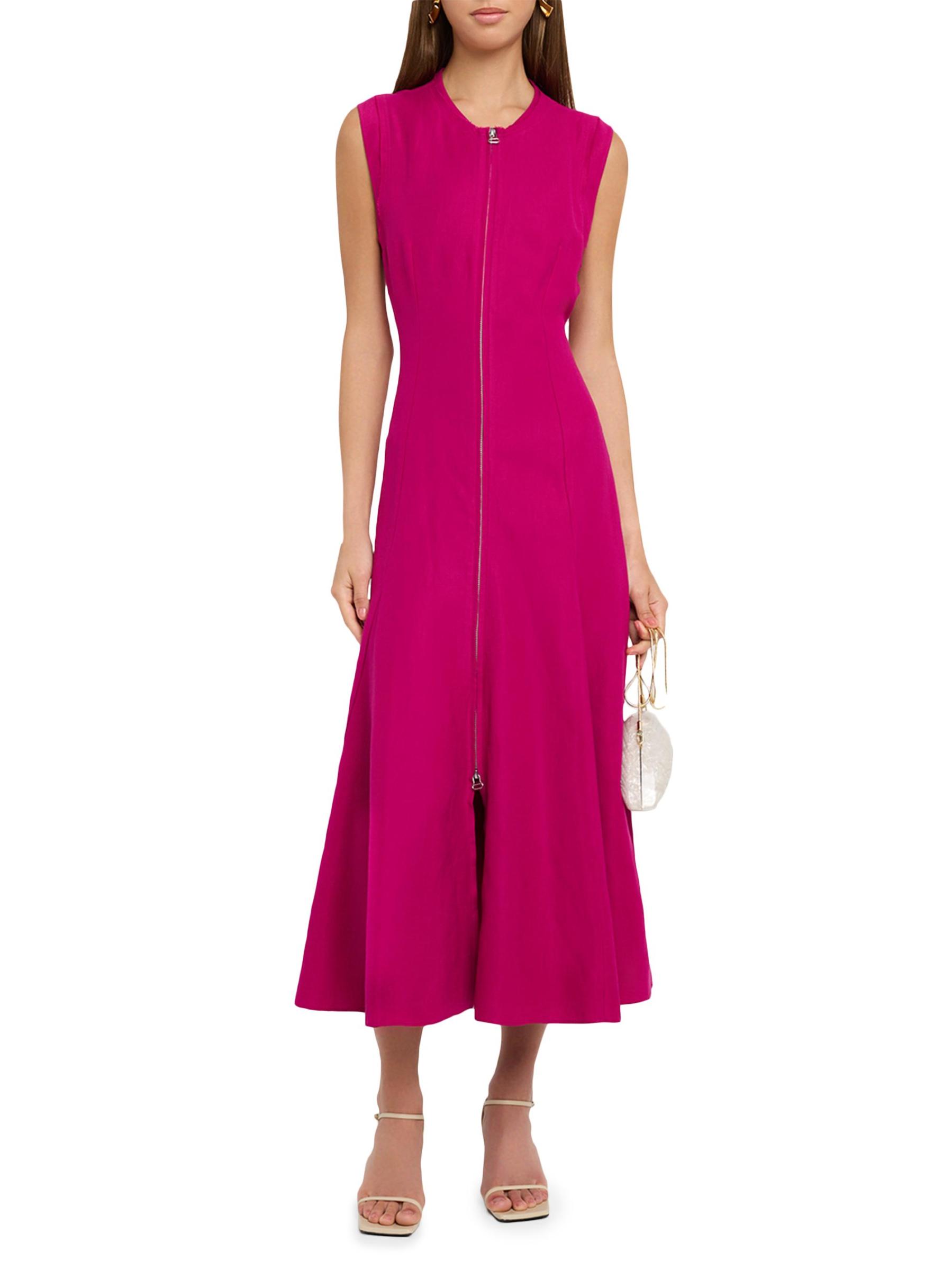 تم تصميم فستان Cornelia المتوسط هذا من Argent بخياطة دقيقة وسحّاب أمامي ثنائي الاتجاه.فتحة رقبة على شكل جوهرة بدون أكمام إغلاق بسحّاب أمامي باتجاهين فيسكوز/كتان مستوردة