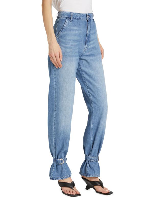 يتميز بنطال كوستا من Triarchy بتصميم مدبب فريد ومزين بأبازيم عند الأساور.