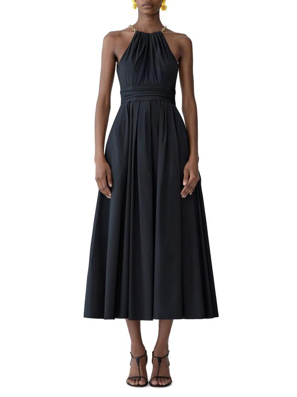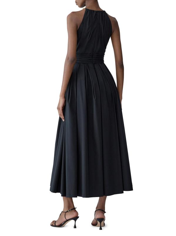 فستان متوسط الطول برقبة رسن من مزيج القطن
