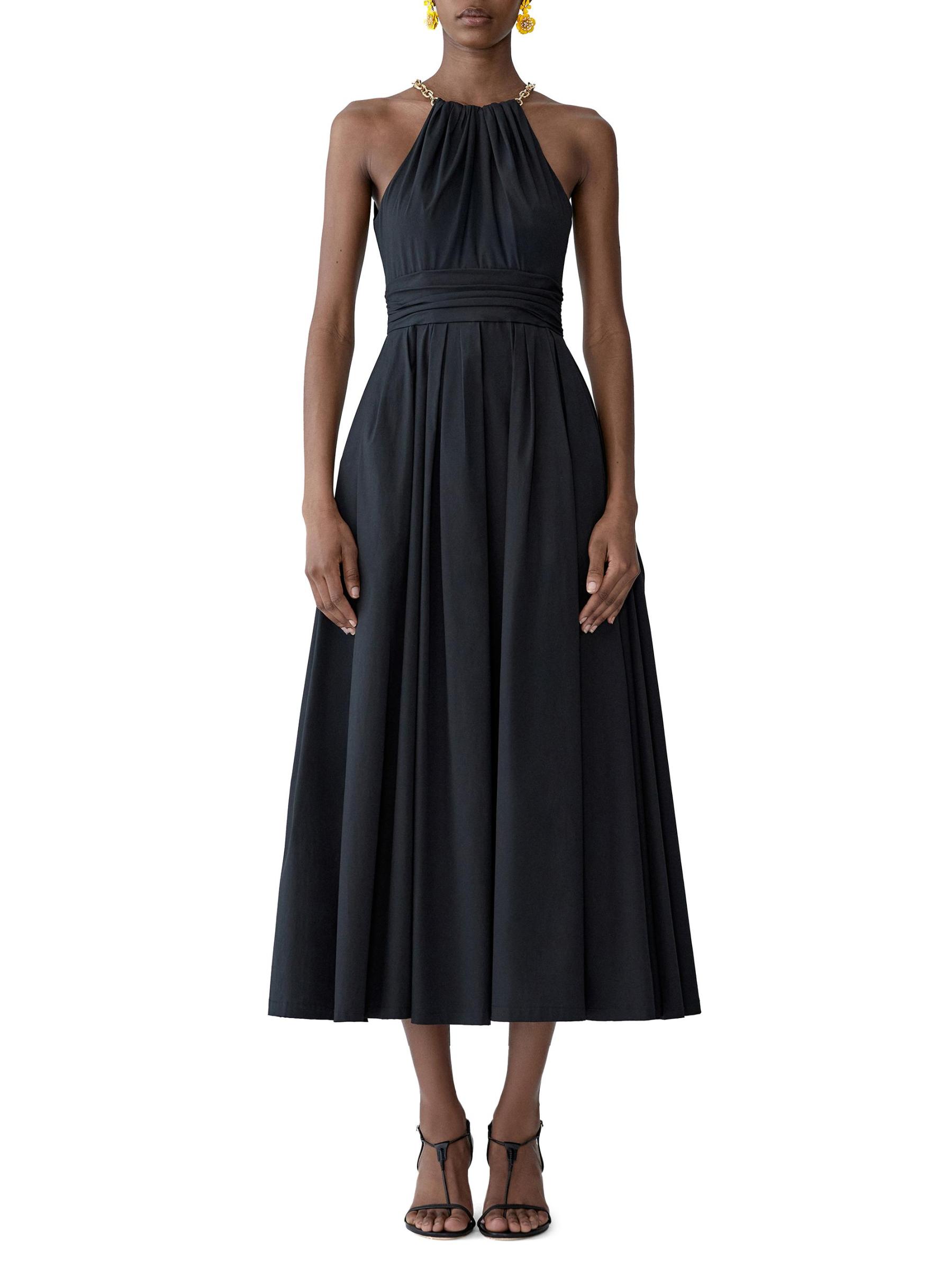 صُمم فستان كوكتيل Carolina Herrera هذا بتصميم على شكل حرف A، وهو مصنوع من القطن المرن مع خصر مطوق. تُبرز سلسلة باللون الذهبي خط العنق الرسن لهذا الطراز متوسط الطول لجاذبية عصرية.رقبة هالتيرنك بدون أكمام خصر مطوق إغلاق بسحّاب مخفي 97% قطن/ 3% بولي يوريثين تنظيف جاف صُنع في إيطاليا
