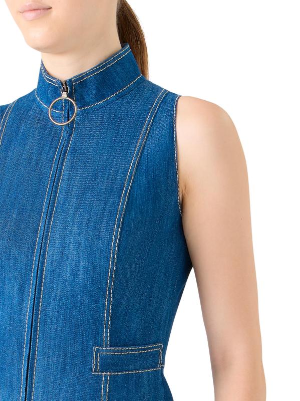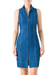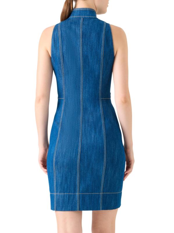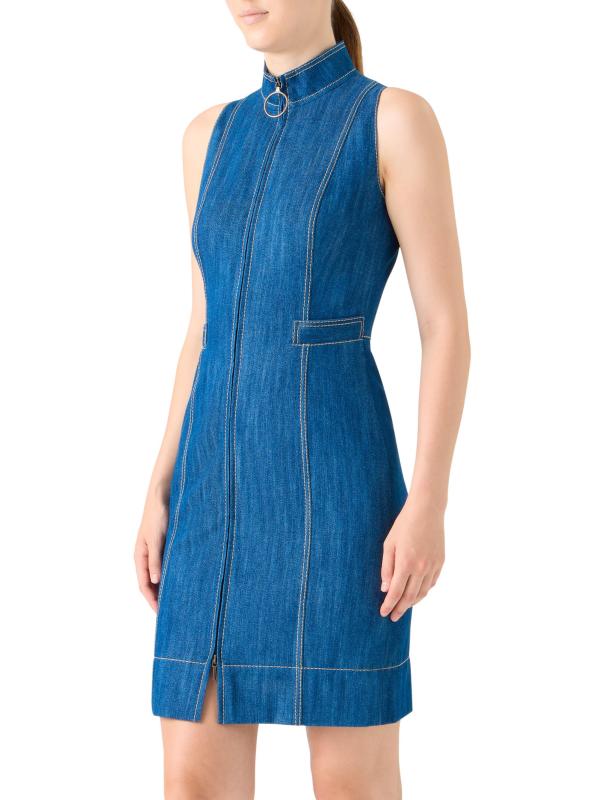 صُنع هذا الفستان القصير من الدنيم بدون أكمام من Akris punto من القطن القابل للتمدد، وتم تصميمه في صورة ظلية ضيقة تتميز بسحّاب دائري باللون الذهبي.