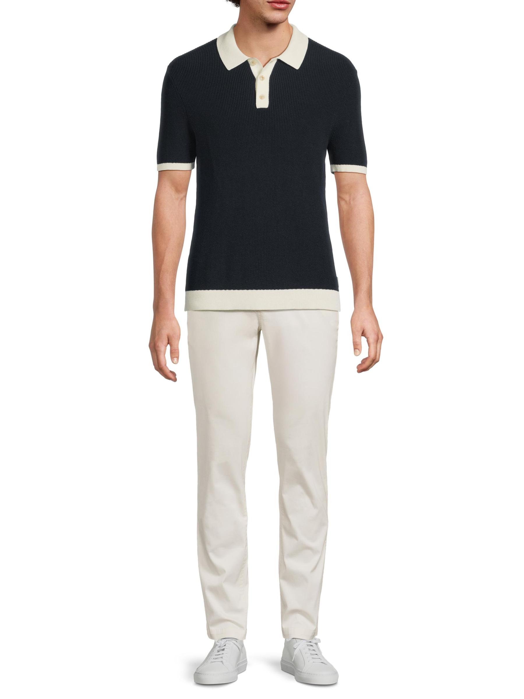 قميص بولو من القطن والكتان المحبوك