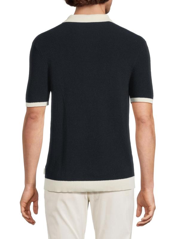 تم تصميم قميص بولو المحبوك هذا من أونيا، المصنوع من القطن والكتان، بزخرفة متباينة وياقة واسعة وفتحة بثلاثة أزرار.طوق سبريد أكمام قصيرة إغلاق بأزرار أمامية 85% قطن/ 15% كتان غسيل يدوي مستوردة