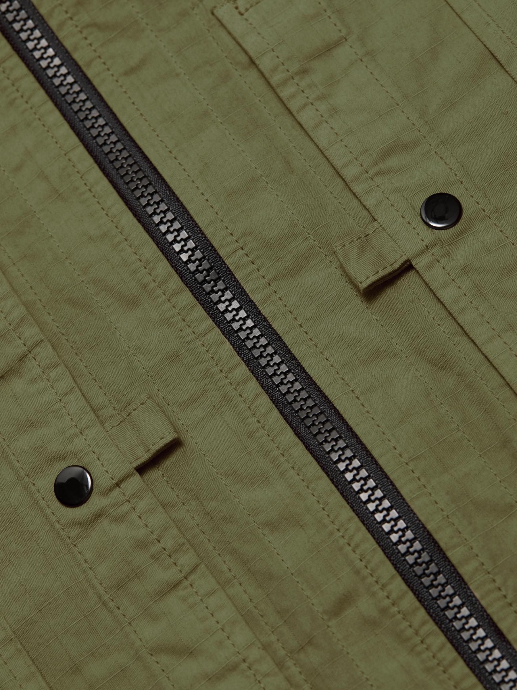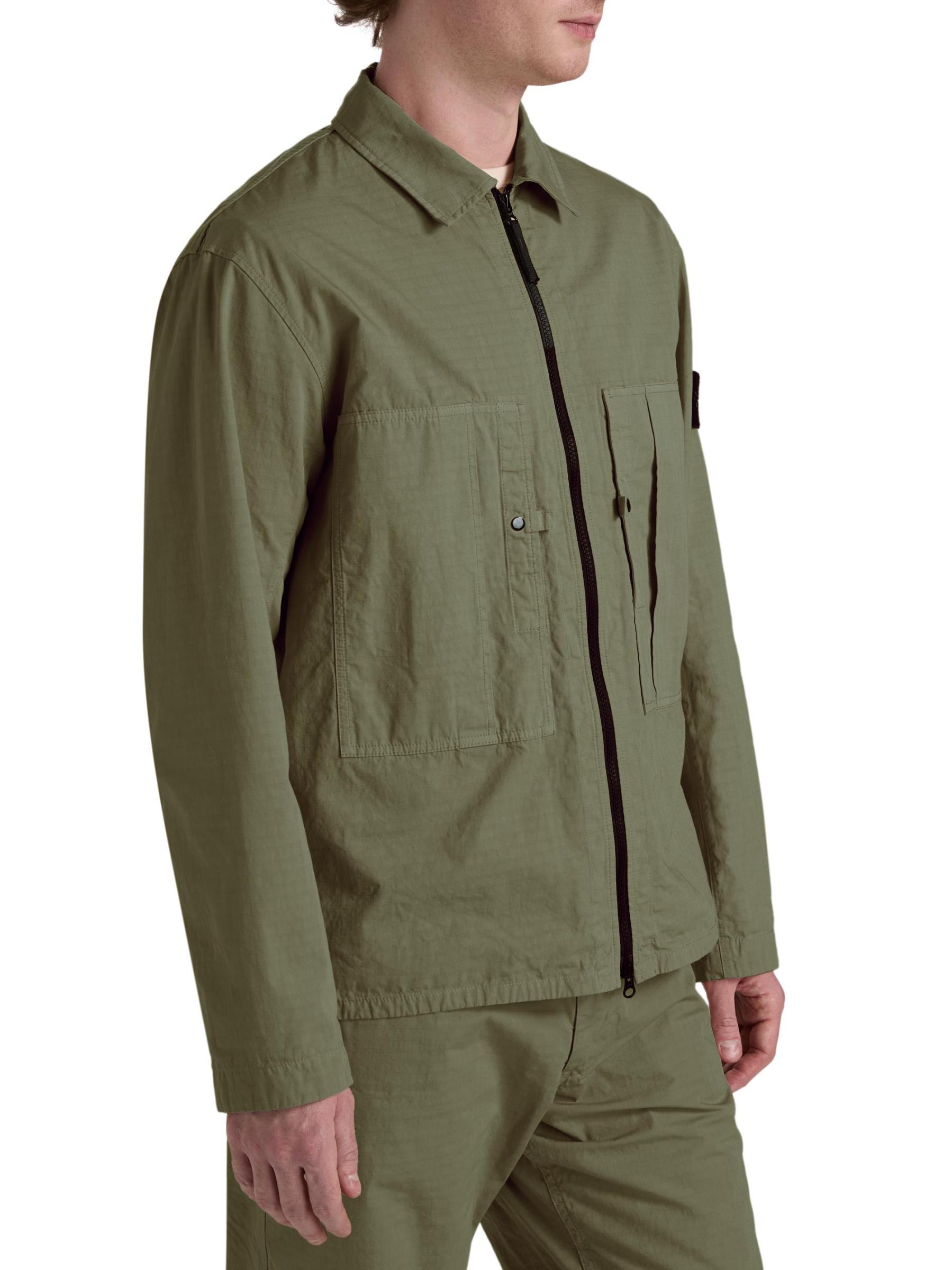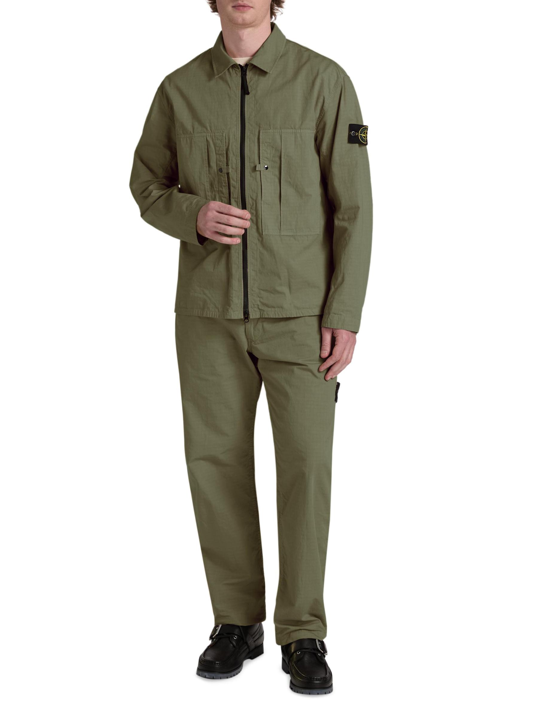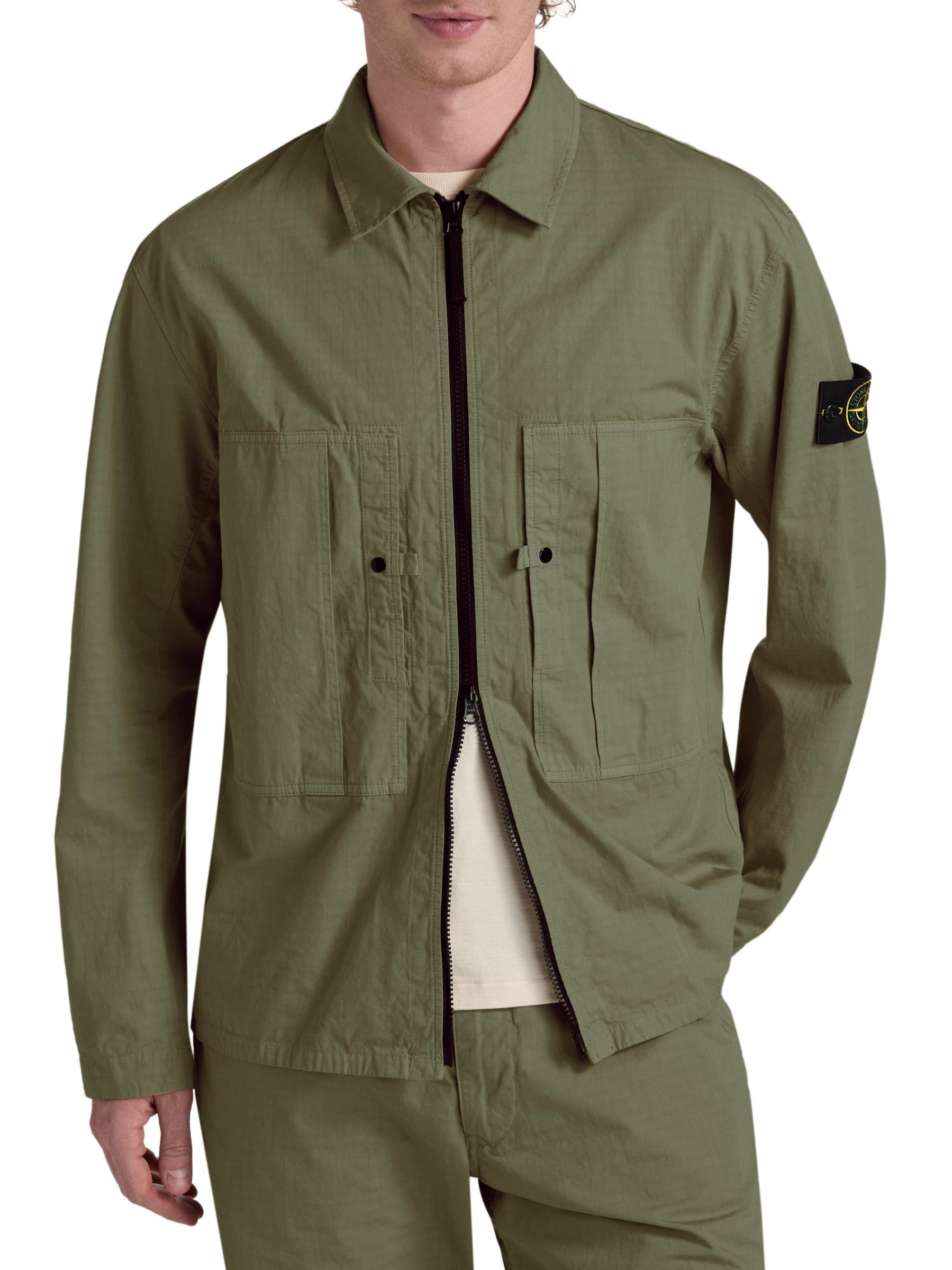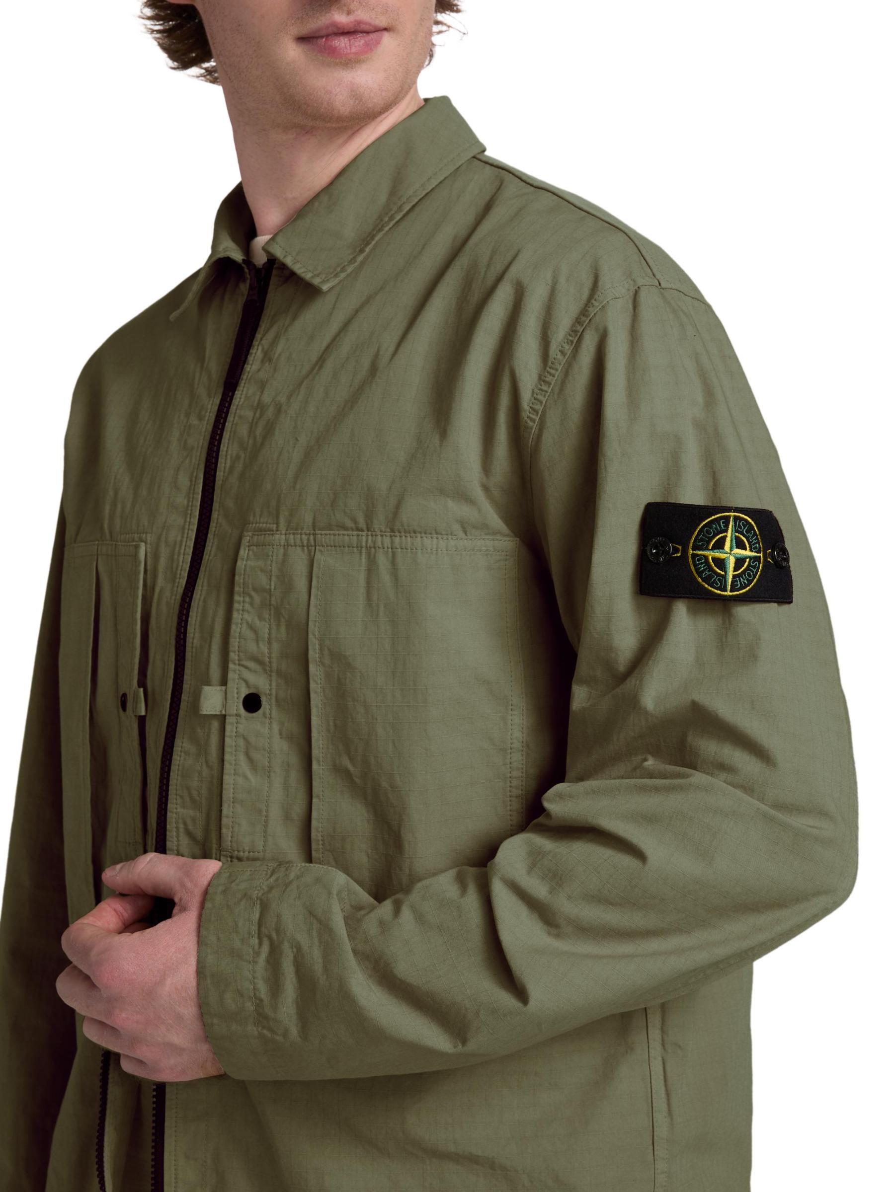 يتميز هذا القميص المستوحى من الطراز العسكري من ستون آيلاند، المصنوع من القطن المقاوم للتمزق، بياقة واسعة وجيوب على الصدر وسحّاب أمامي باتجاهين. تُبرز رقعة الشعار المطرّزة تفاصيل الأكمام اليسرى للنمط.