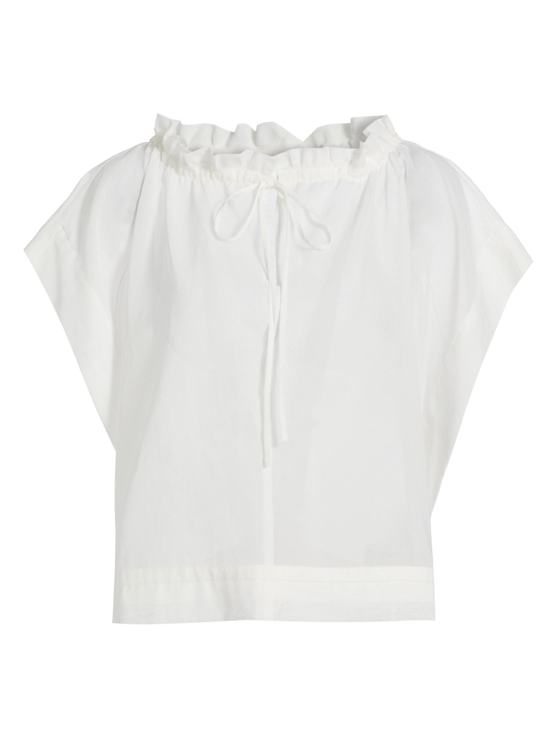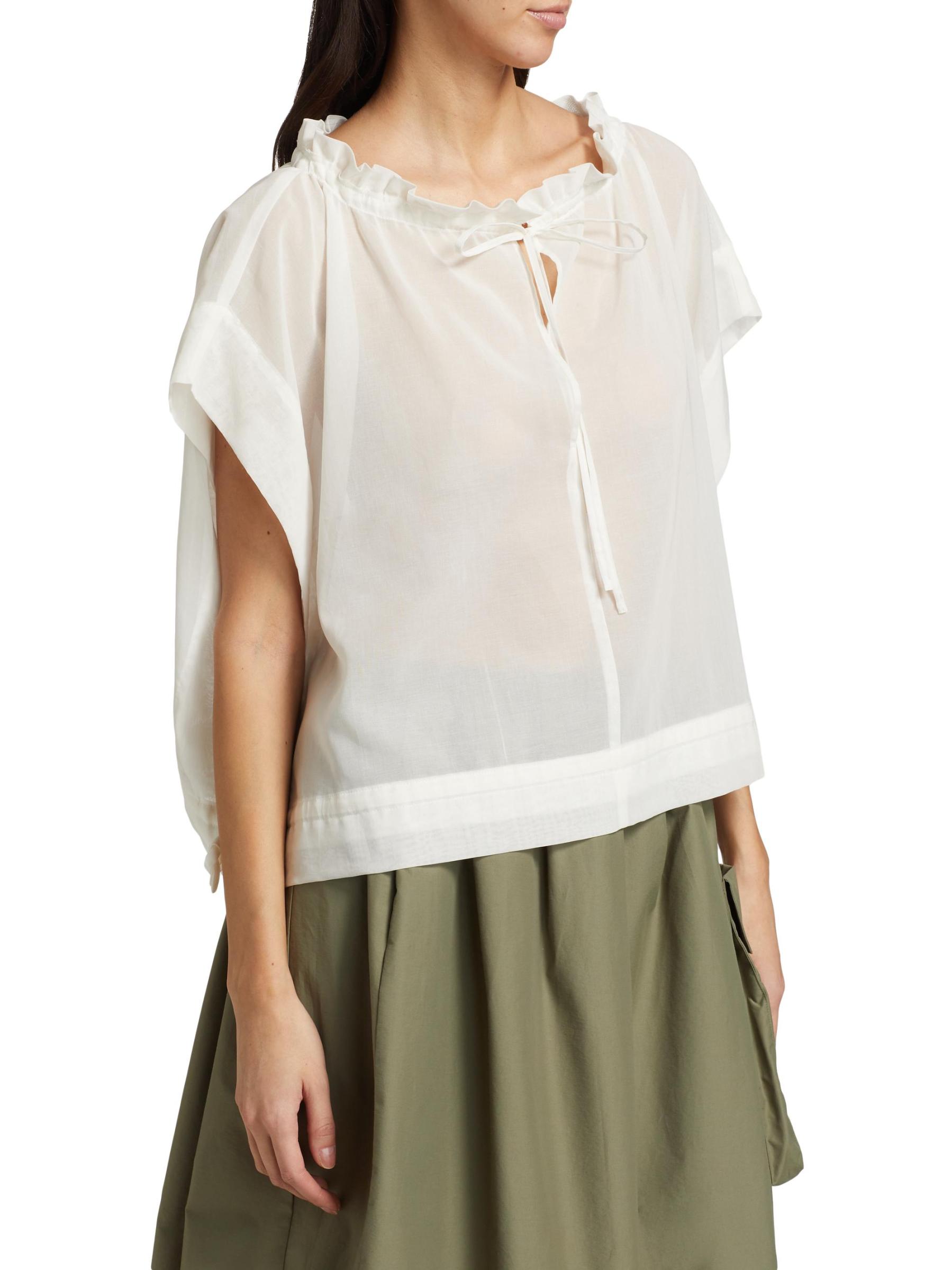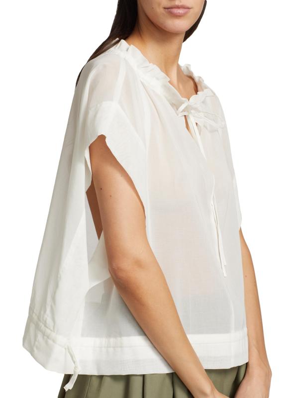 من مجموعة سارتوريال راونس. تتميز هذه البلوزة المصنوعة من قطن الأورجانزا الشفاف من Barneys New York بتصميم صندوقي وياقة عريضة مكشكشة.ياقة مكشكشة أكمام قصيرة حافة برباط تسحب قطن بنسبة 100% غسيل يدوي صُنع في اليابان